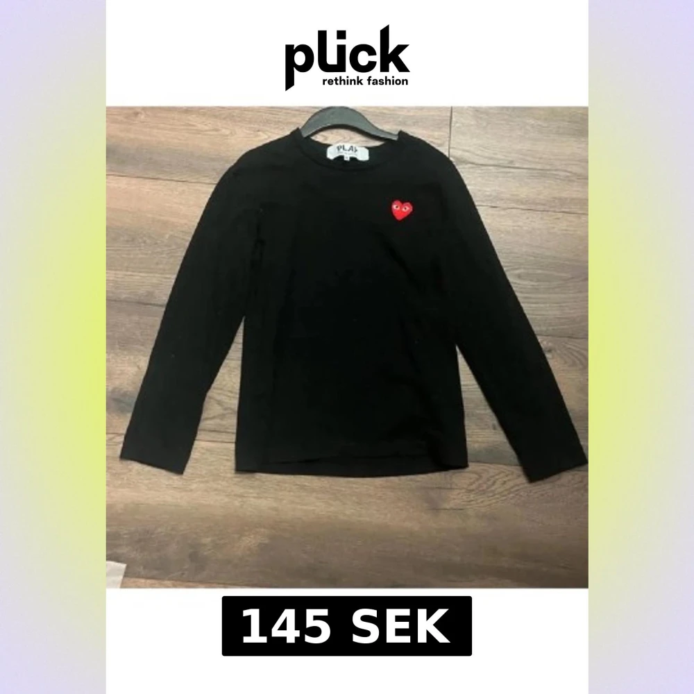 Svart långärmad tröja från Comme des Garçons PLAY med ikoniskt rött hjärta på bröstet. Tröjan har en clean och enkel design med rund hals och normal passform. Perfekt för dig som gillar stilrena plagg med en twist.