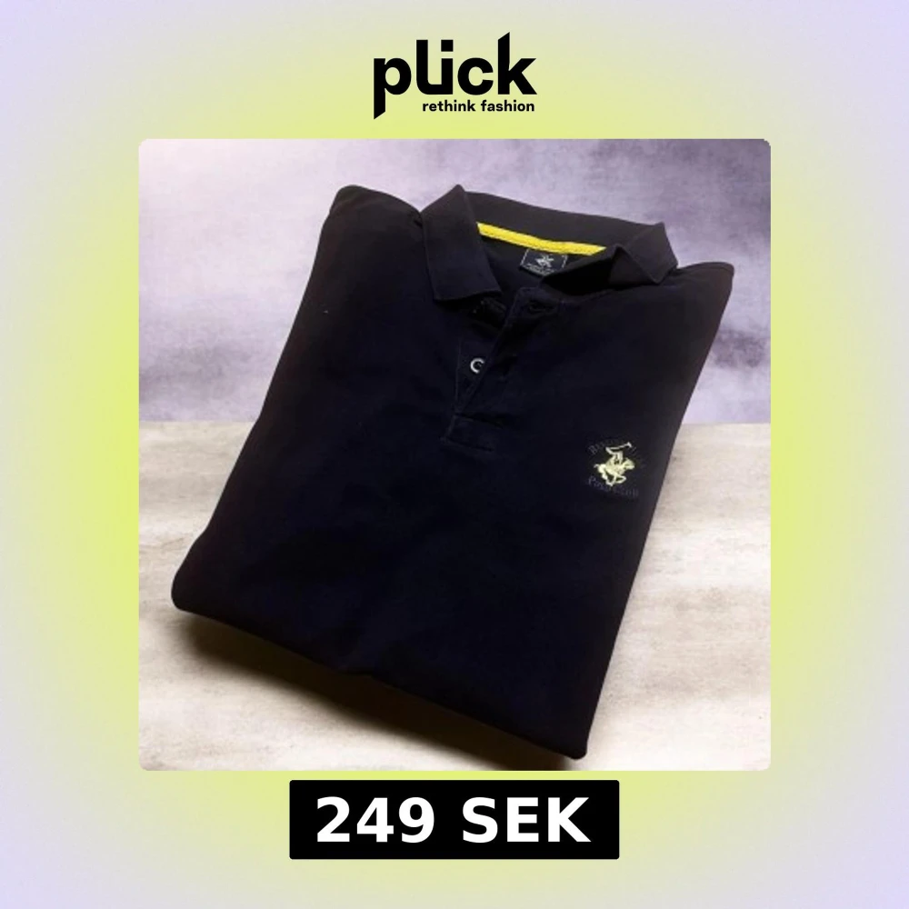 Svart långärmad pikétröja från Beverly Hills Polo Club med gul broderad logga på bröstet. Klassisk krage, knappar framtill och diskreta gula detaljer vid insidan av kragen och nederkant. Tillverkad i mjuk bomull som är skön mot huden.