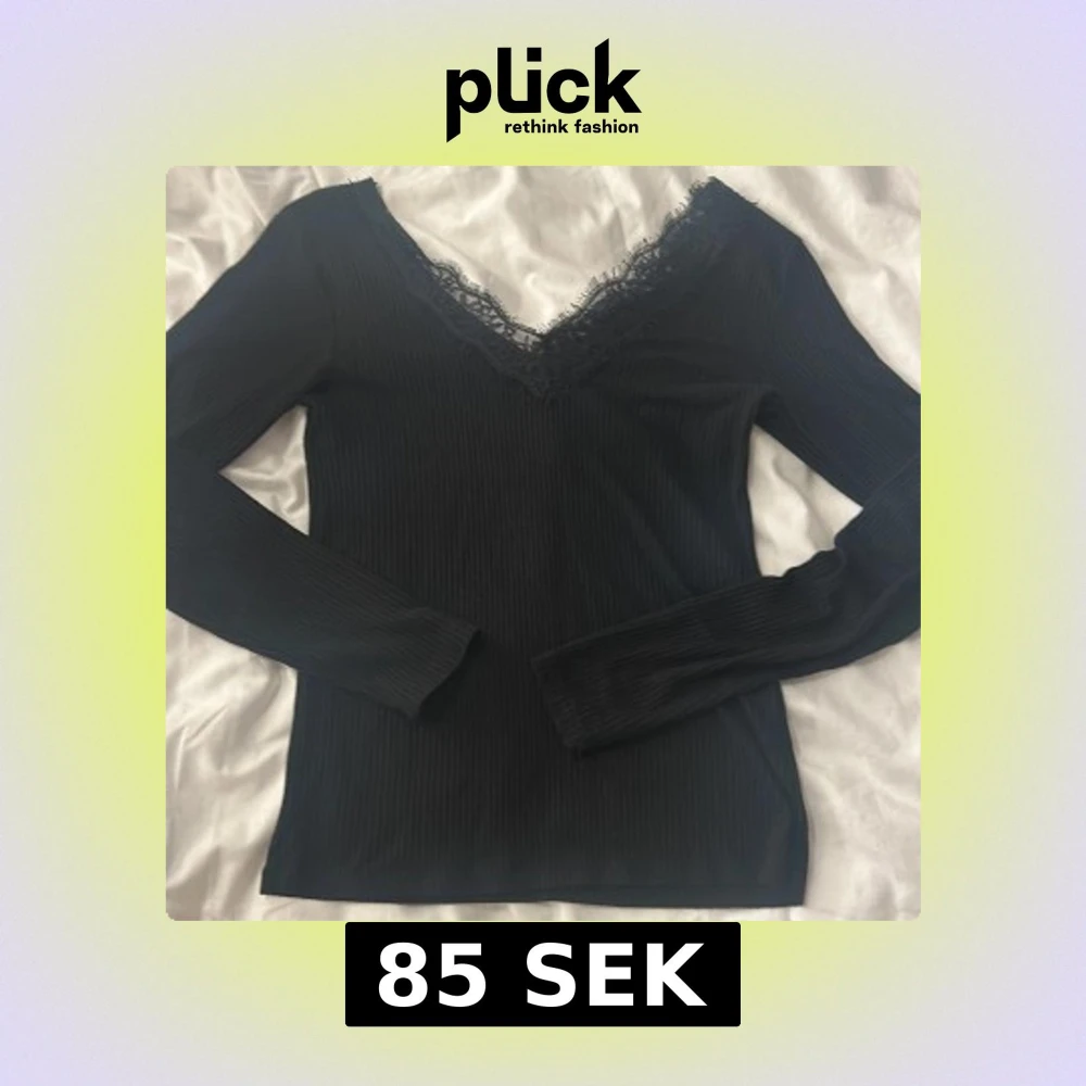 Snygg svart ribbad topp frĂ„n New yorker med spetsdetaljer. StĂ„r storlek M men passar som Sđ Ăr nĂ€stan som intimissimi tröjan. LĂ„ngĂ€rmad och tillverkad i ett mjukt materialđ