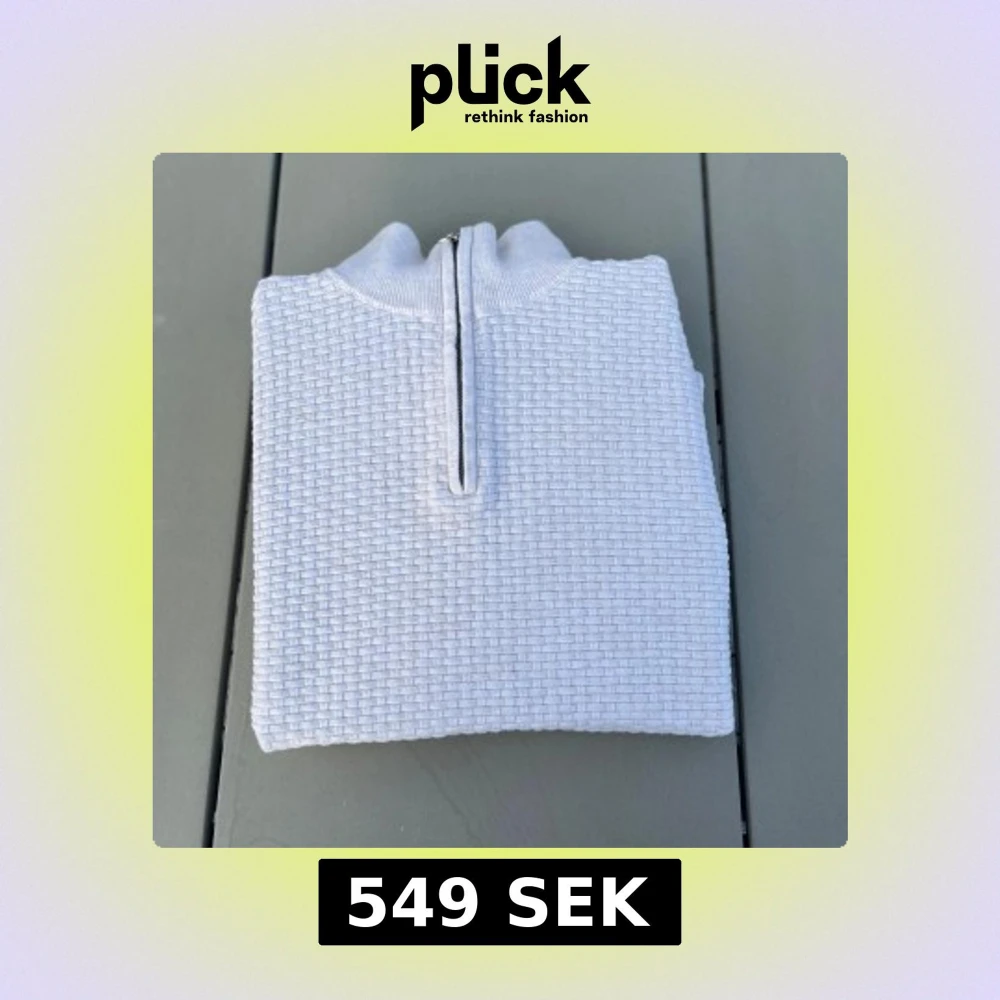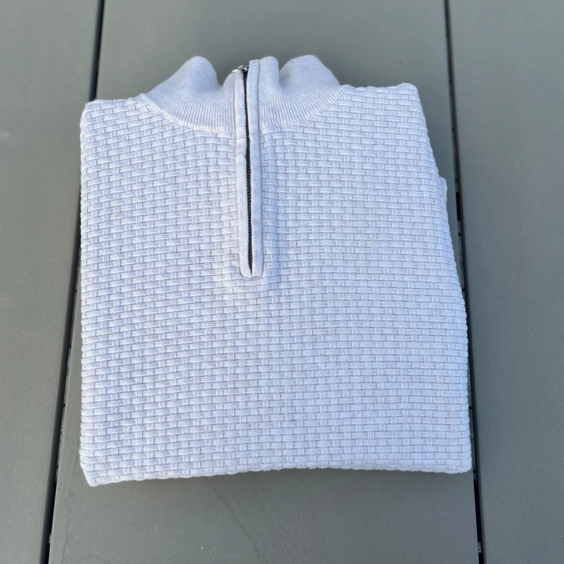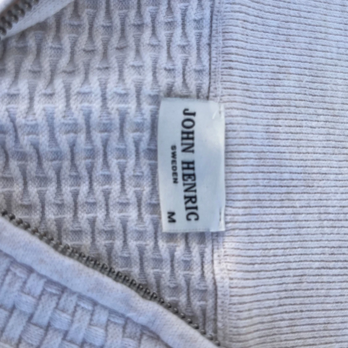 Säljer en fräsch vit tröja från John Henric i storlek M. (NYPRIS: 1899kr) Tröjan har ett snyggt strukturerat mönster och en half zip-dragkedja vid halsen. Perfekt för dig som gillar stilrena och moderna plagg med lite extra detalj. Passar till både jeans och chinos.