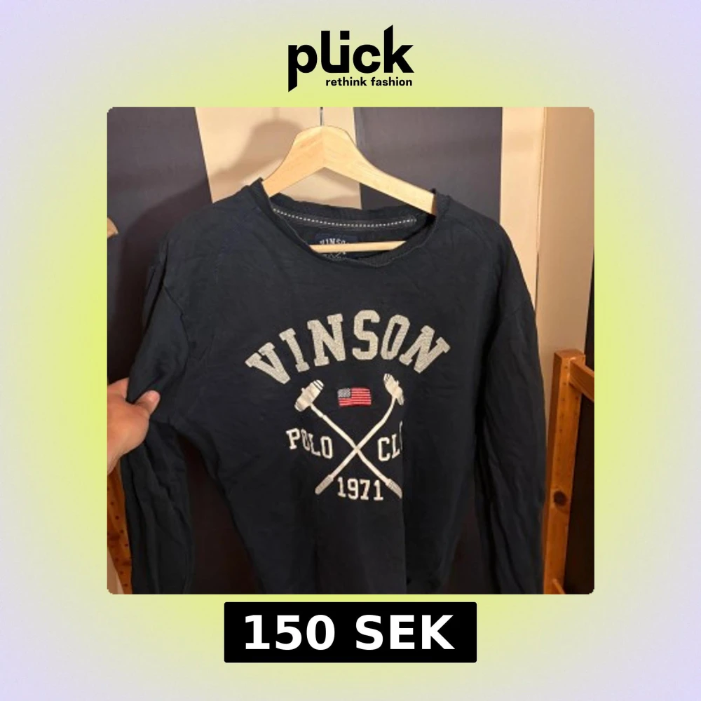 Mörkblå långärmad tröja från Vinson Polo Club med tryck framtill, amerikansk flagga och korsade poloklubbor. Rund halsringning och mjukt bomullsmaterial. Perfekt för dig som gillar sportig och avslappnad stil.