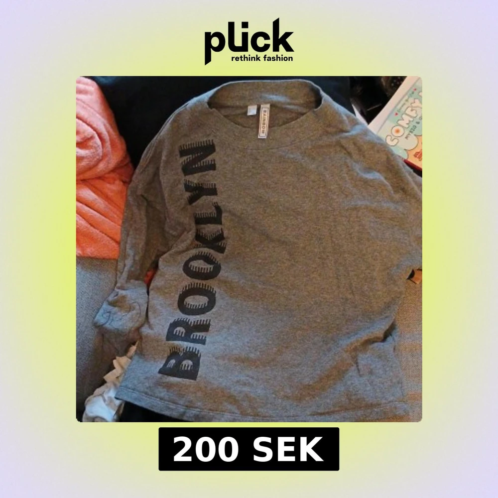 Säljer en grå tröja från Rainbow med texten 'BROOKLYN' i svart på framsidan. Tröjan har långa ärmar och en rund halsringning. Perfekt för en avslappnad stil.