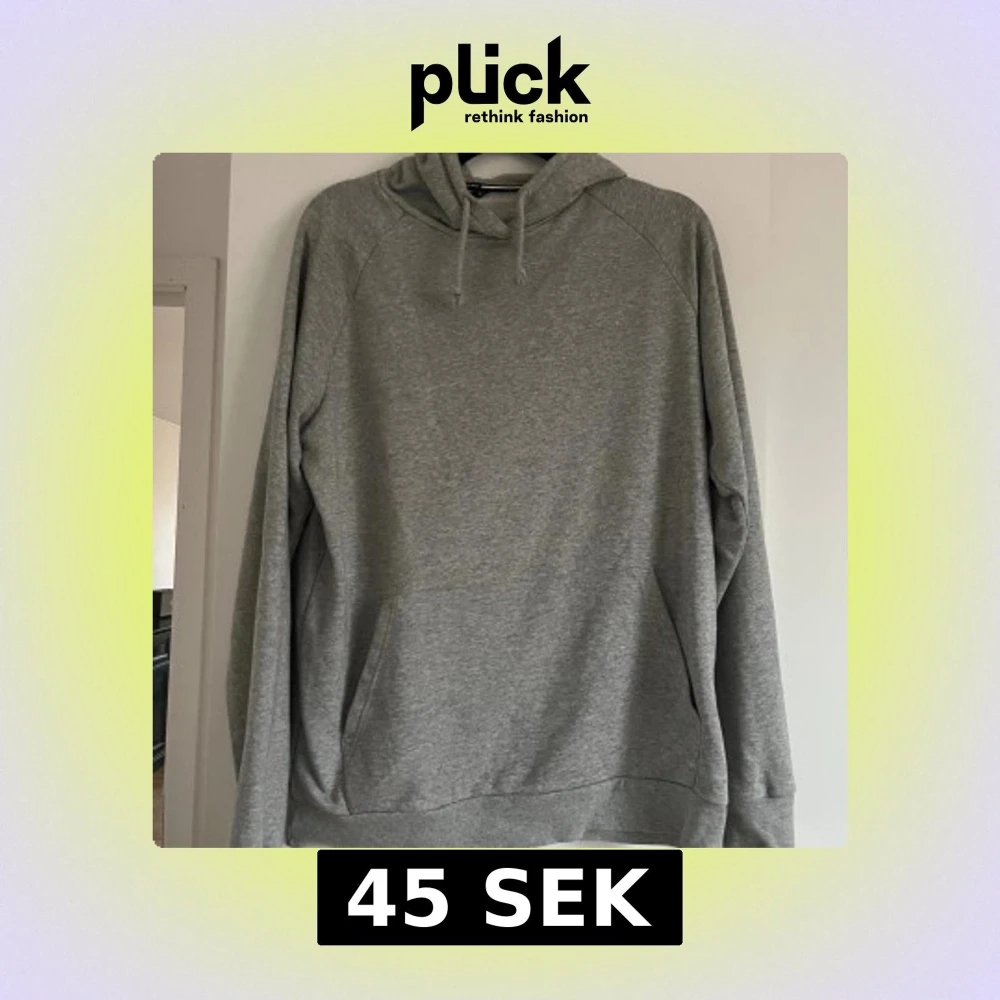 Enkel och stilren grå hoodie från SOC i storlek M. Tröjan har huva med snörning, känguruficka framtill och långa ärmar.