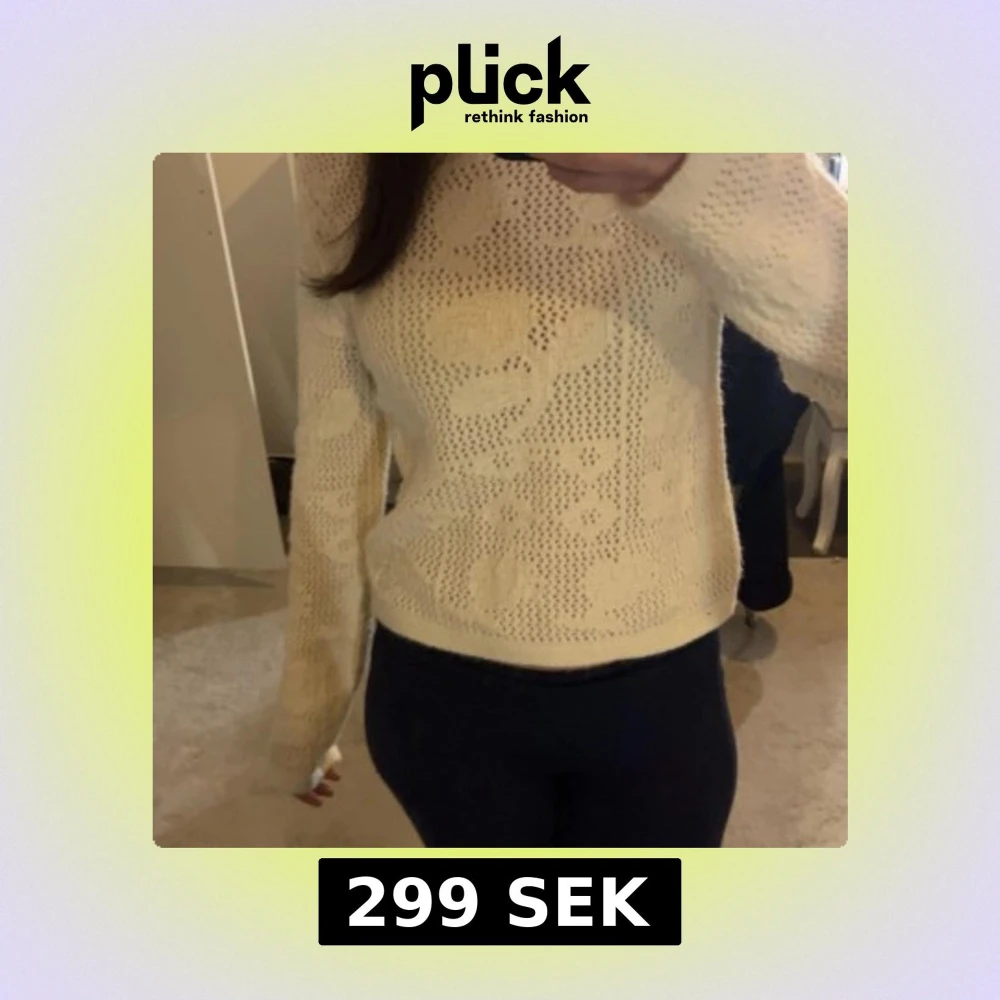 Säljer en söt vit stickad tröja med blommigt mönster.💗