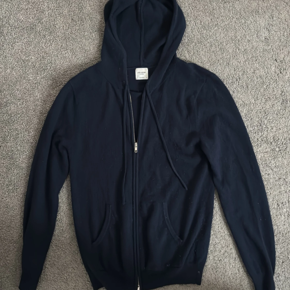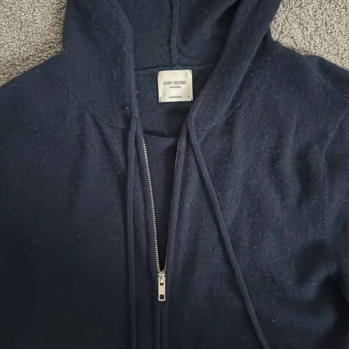 Säljer en stilren mörkblå hoodie från John Henric. Den har en praktisk dragkedja framtill och en klassisk huva med dragsko. Perfekt för en avslappnad look. Nypris 2500: mitt pris 1200