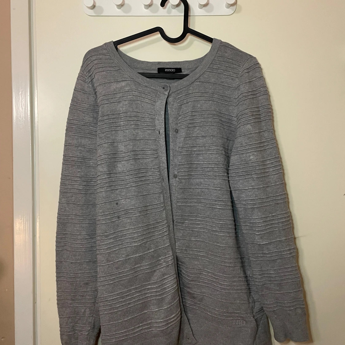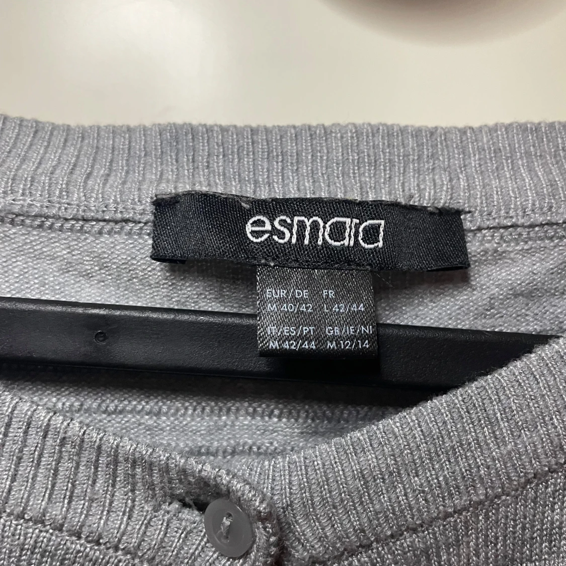 Säljer en stilren grå kofta från Esmara. Koftan har ett diskret randigt mönster och knappar framtill. Perfekt för lager-på-lager under kyligare dagar. 🩶