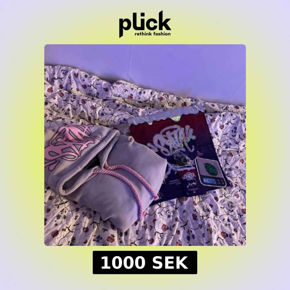 Säljer en grå hoodie från Unlucky Rules med fet rosa graffiti-tryck på huvan och grova rosa snören. Klassisk känguruficka framtill och mjukt material som känns riktigt skönt. Perfekt för dig som gillar streetwear och vill sticka ut lite extra.