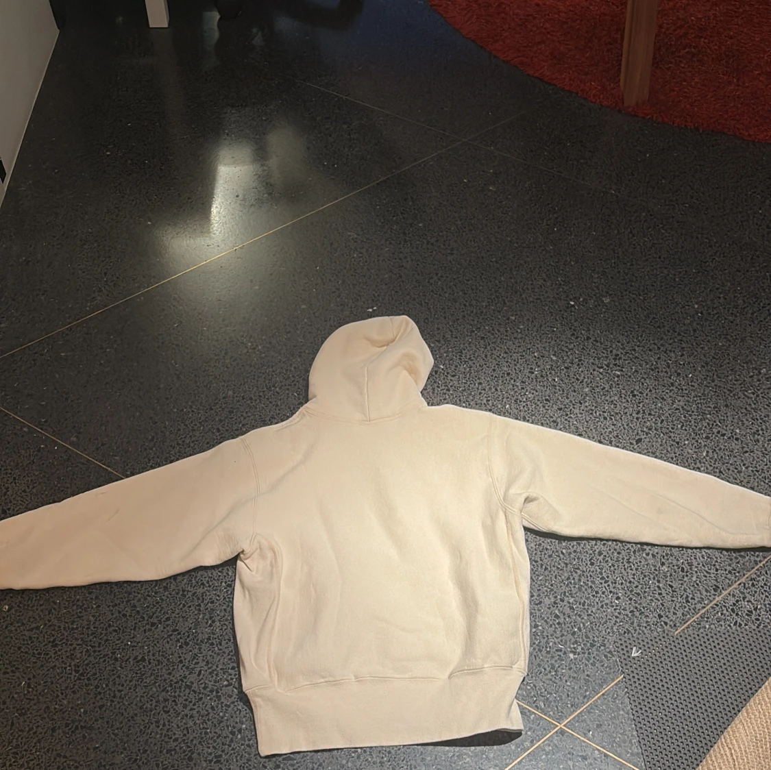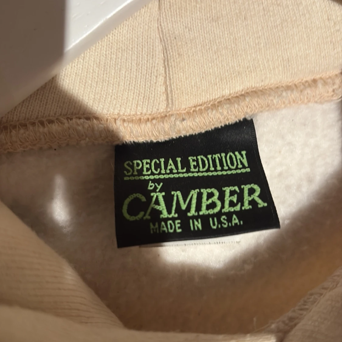 Säljer en beige hoodie från Camber for SNS, special edition. Tröjan har huva med snörning, känguruficka och ribbade muddar. Tillverkad i USA och gjord i mjuk bomull. Perfekt för dig som gillar clean och enkel streetwear.