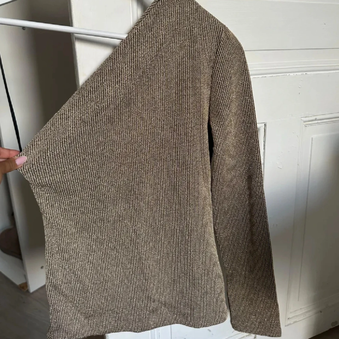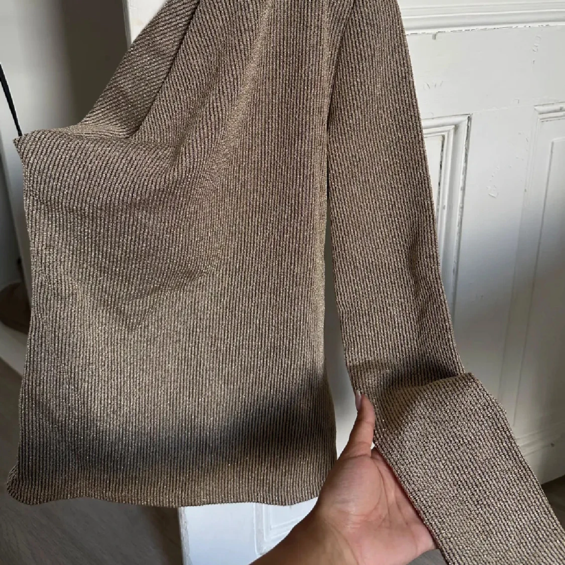 Säljer en beige ribbad stickad tröja med lång ärm och figurnära passform. Tröjan har en enkel och stilren design, perfekt att matcha med jeans eller kjol. Materialet är mjukt och stretchigt för extra komfort. Lånad bild!