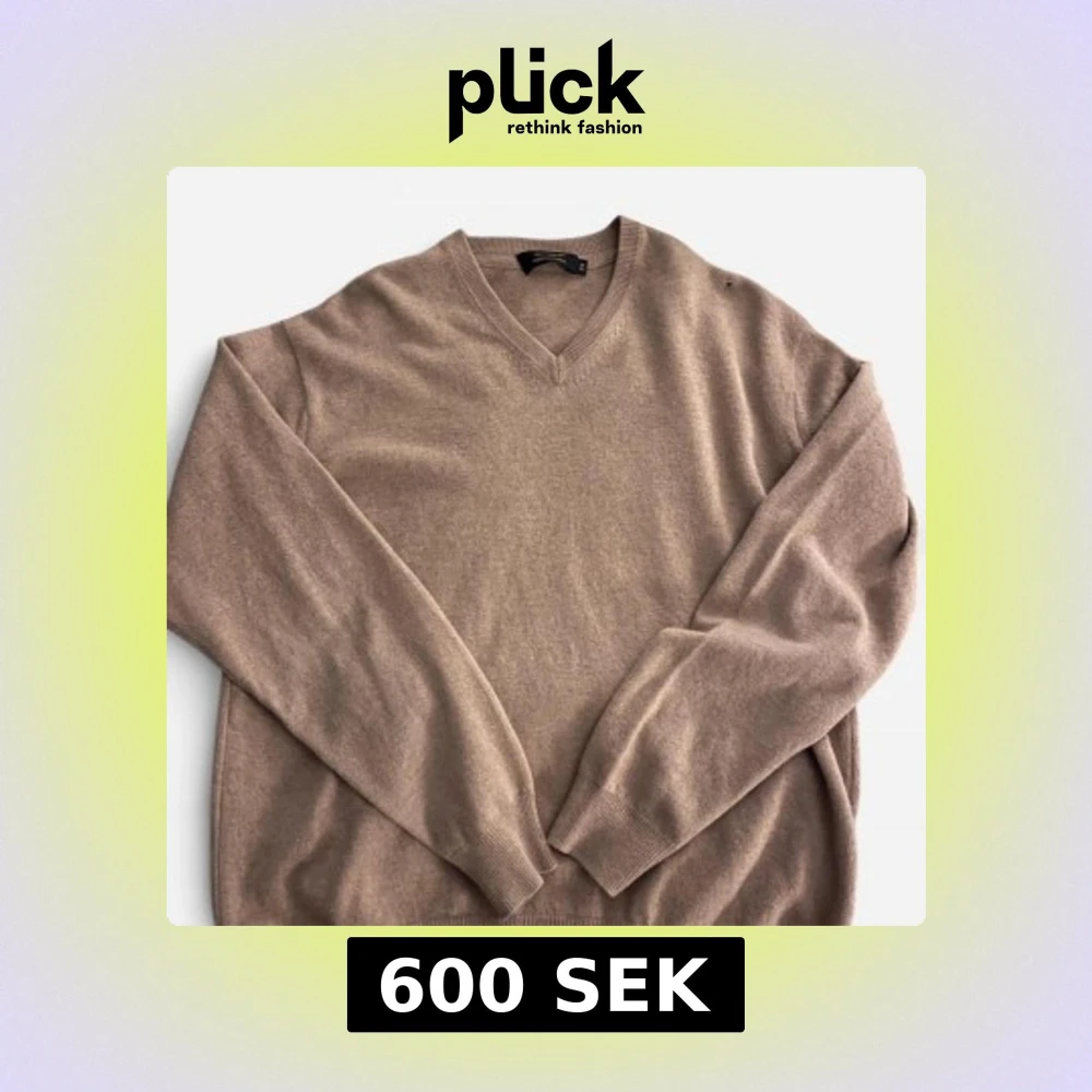 Säljer en lyxig beige kashmirtröja från Van Graaf. Tröjan har en v-ringad design och långa ärmar, perfekt för en stilren look. Den är tillverkad i 100% kashmir vilket gör den extra mjuk och bekväm. Passar perfekt för kyligare dagar. En liten defekt som visas på sista bilden är ett litet hål nära vänstra axeln, går säkert att laga.