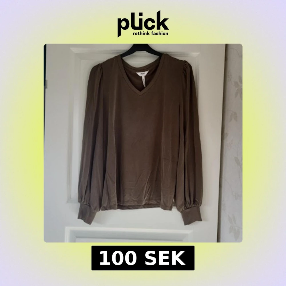 Säljer en brun v-ringad topp från Object med långa puffärmar och breda muddar vid ärmsluten. Tunt och mjukt material som ger en skön känsla. Perfekt för dig som gillar stilrena och enkla plagg med en twist.