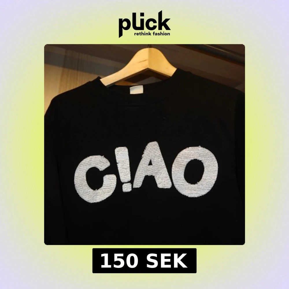Snygg svart tröja med ett stort vitt 'CIAO' tryck på framsidan. Perfekt för en avslappnad stil. Tröjan har långa ärmar och en rund halsringning.