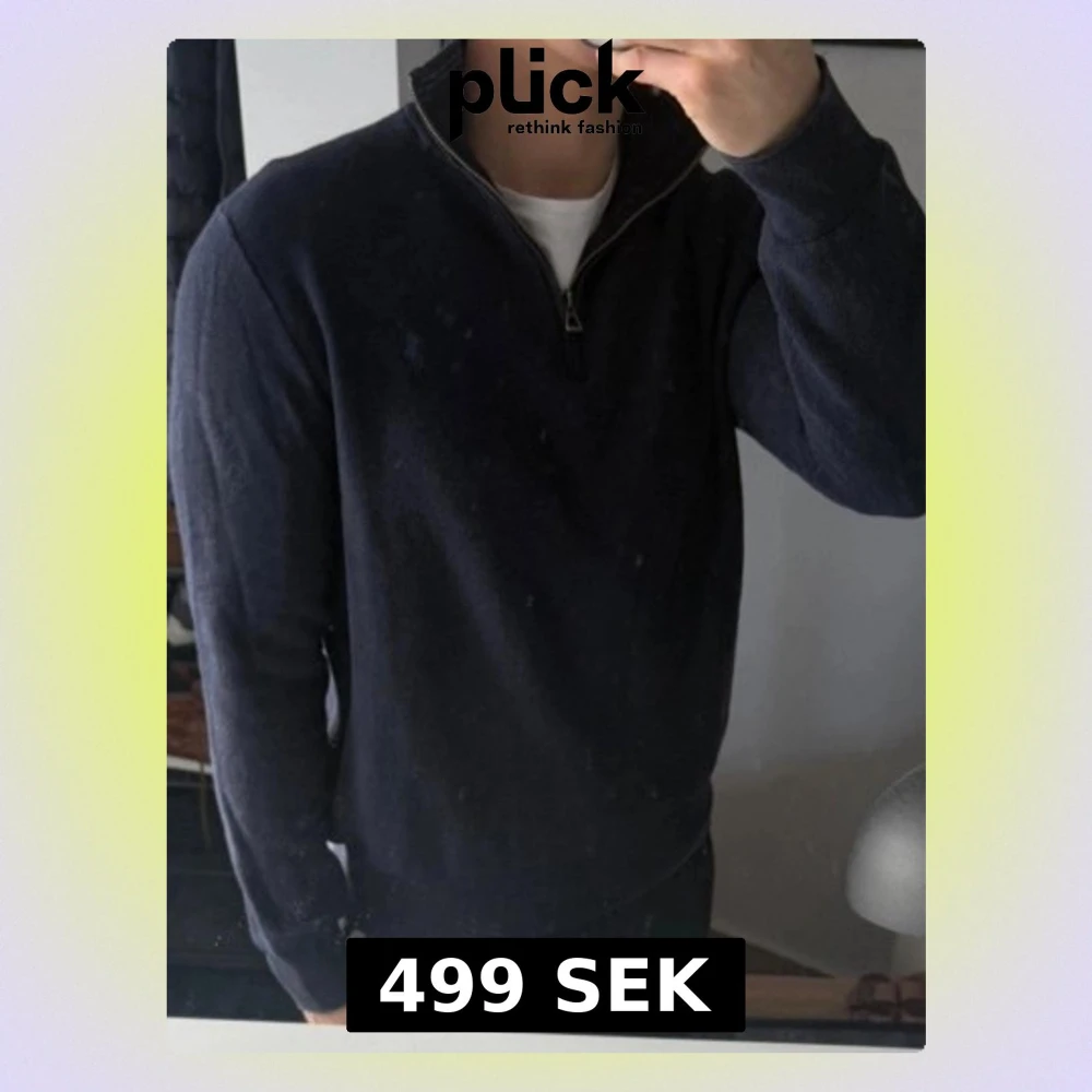 Mörkblå långärmad tröja med halv dragkedja och hög krage. Tröjan har en enkel och stilren design, perfekt för lager-på-lager och funkar till det mesta. Tillverkad i mjukt material för skön känsla.