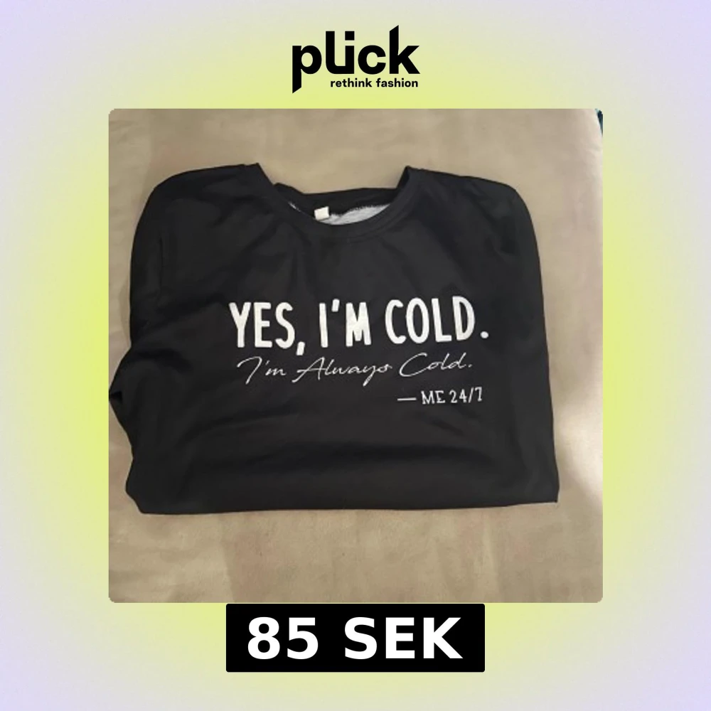 Säljer en svart långärmad tröja med trycket 'YES, I'M COLD. I'm Always Cold. - ME 24/7'. Perfekt för dig som alltid fryser! 🖤