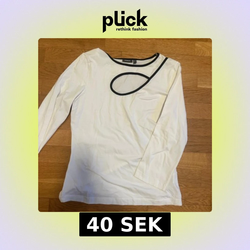 Snygg vit långärmad topp från Gerry Weber med unik svart kantdetalj runt halsen. Perfekt för en stilren look. Passar bra till både jeans och kjol. 🖤