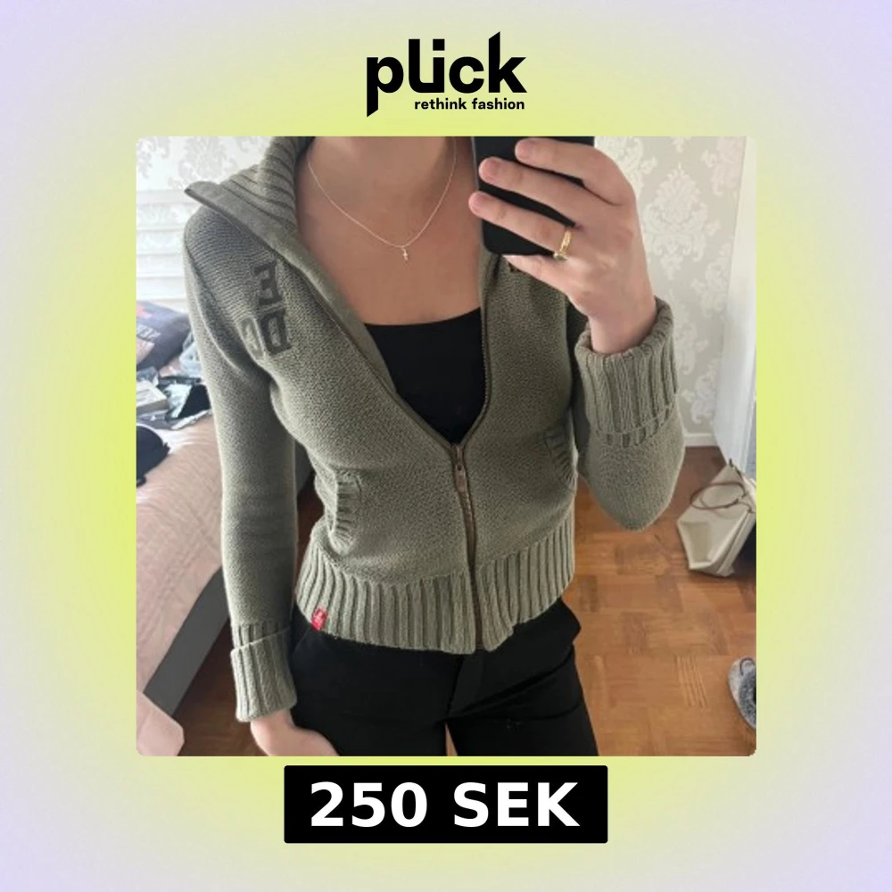 Säljer en olivgrön stickad cardigan med dragkedja framtill och hög krage från Esprit. Storlek M men den är väldigt liten i storleken, skulle säga att den passar mer en liten S eller XS. Fint skick!