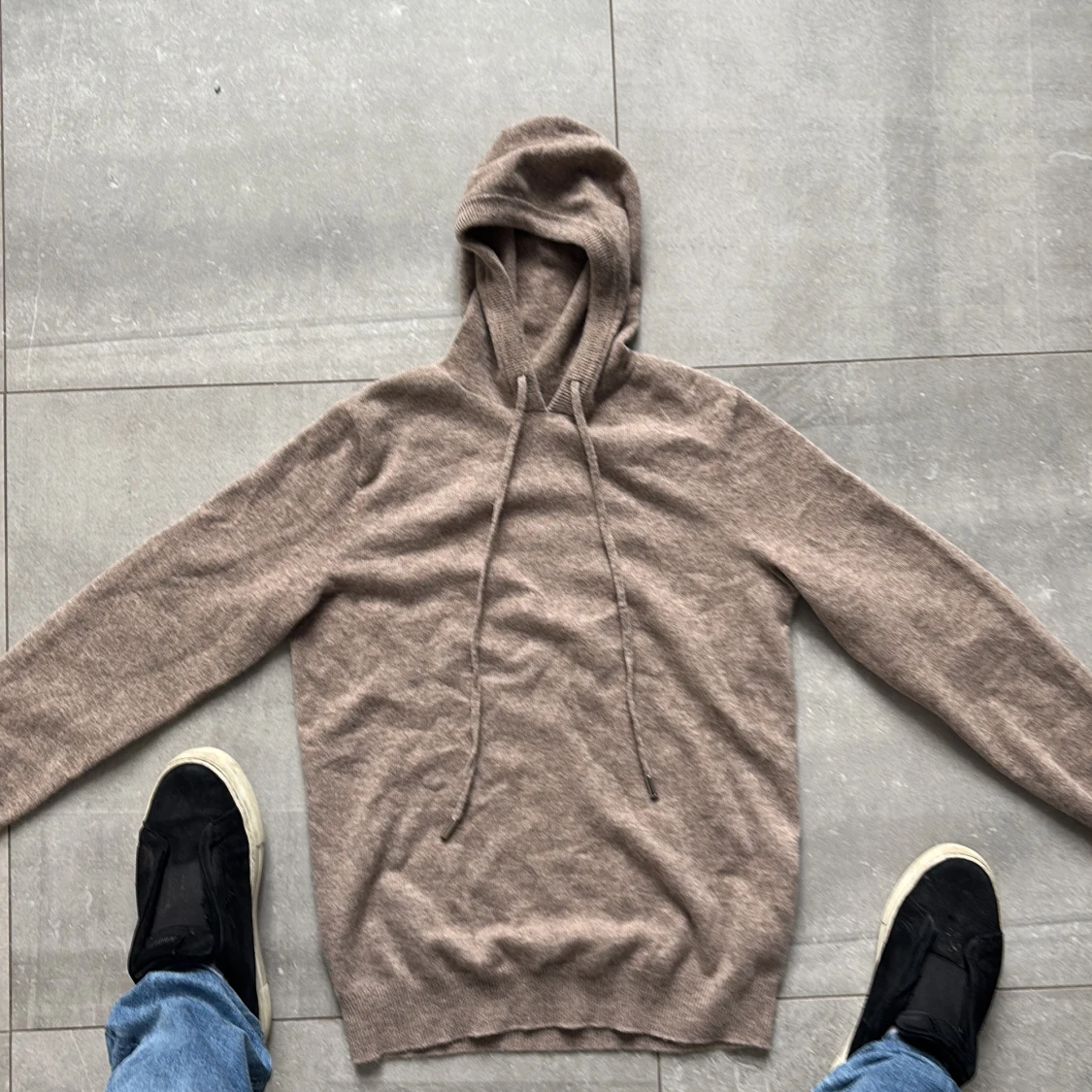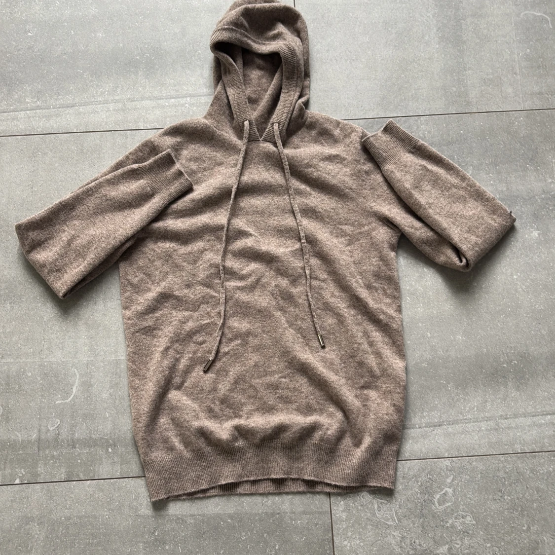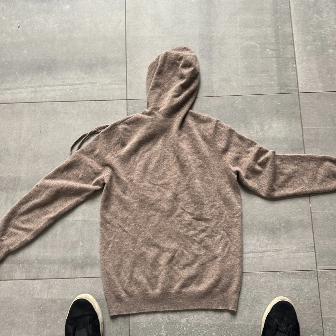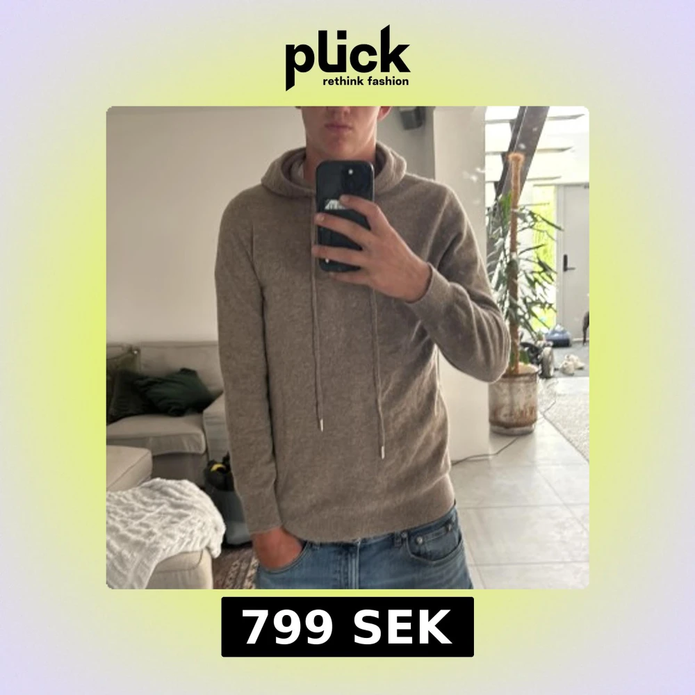 Mysig beige hoodie i stickat material med långa ärmar och huva. Tröjan har snörning i halsen och ribbade muddar vid ärmslut och nederkant. Perfekt för dig som gillar en chill och stilren look.