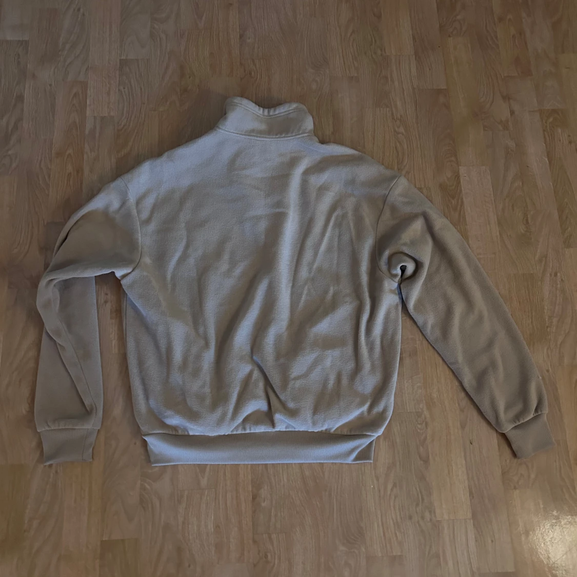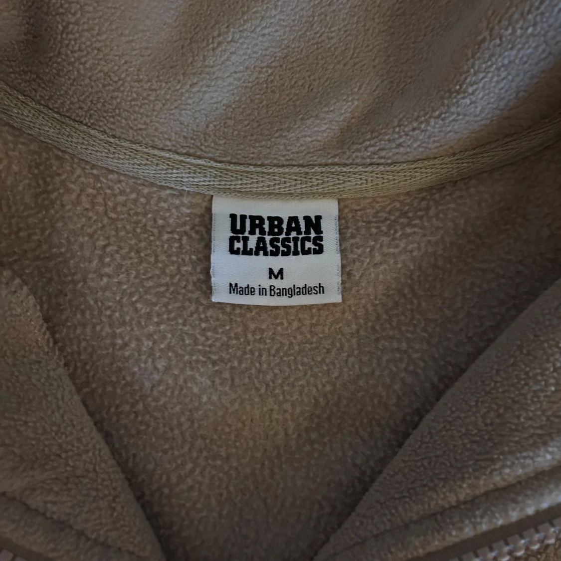 Säljer en beige fleece-tröja från Urban Classics i storlek M. Tröjan har half zip, hög krage och långa ärmar med muddar. Perfekt för kyliga dagar och enkel att matcha med jeans eller mjukisbyxor.