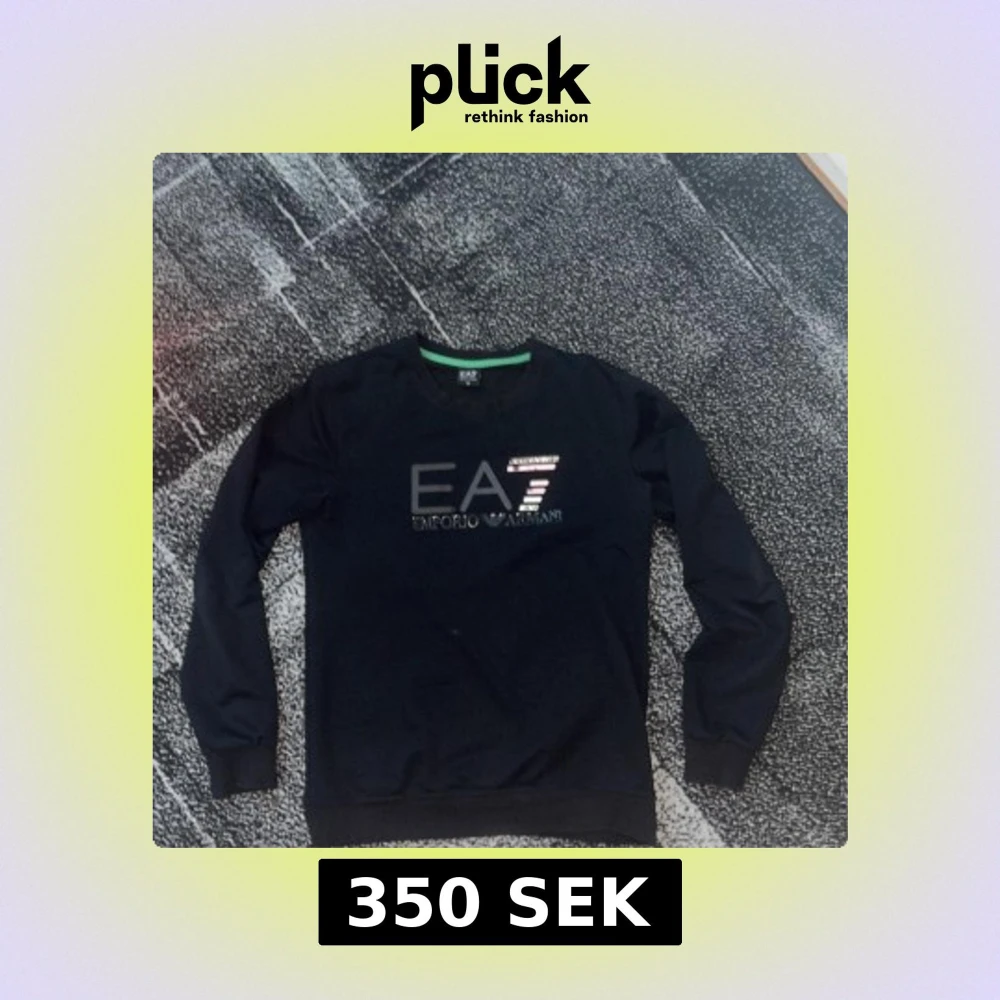 Svart långärmad tröja från EA7 Emporio Armani med tryckt logga i silver och grått på bröstet. Tröjan har rund halsringning med en grön detalj på insidan av kragen. Perfekt för dig som gillar stilrena märkesplagg.