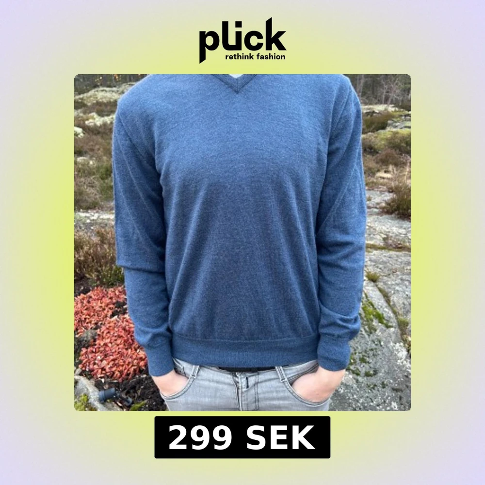 Säljer en stilren blå tröja från Ströms i mjuk merinoull. Tröjan har en v-ringad design och långa ärmar, perfekt för kyligare dagar. Passar både till vardags och mer uppklädda tillfällen. Säljer den för att den tyvärr är för liten. Är vi väldigt bra skick 9/10 skulle jag säga. Är i storlek L men är väldigt lite i storleken så skulle säga att den passar S och M