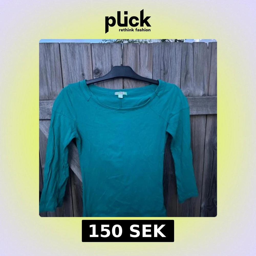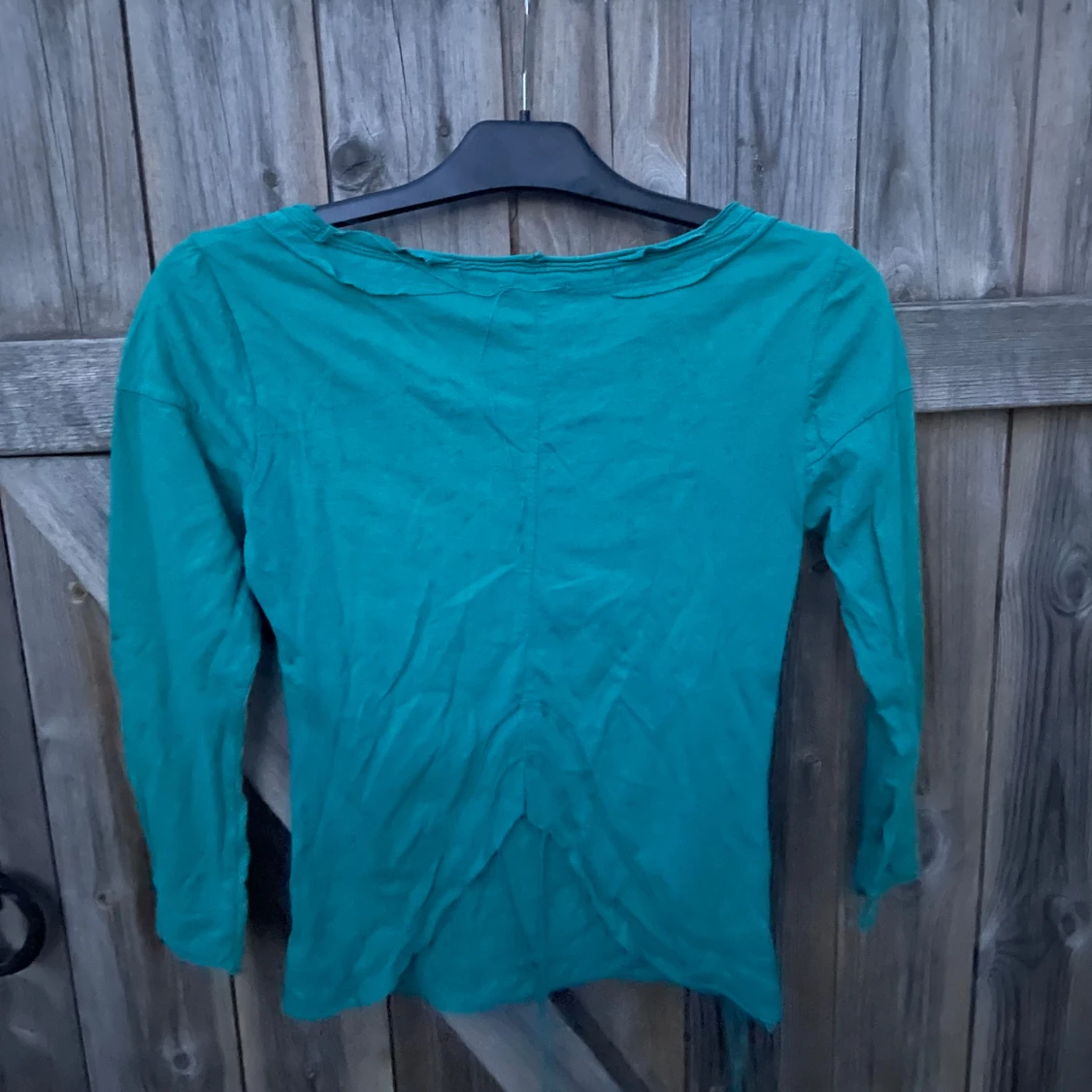 Super söt grön/turkos långärmad tröja från Mby i storlek M. Tröjan har rund halsringning. Passformen är normal och ärmarna är trekvarts-långa.