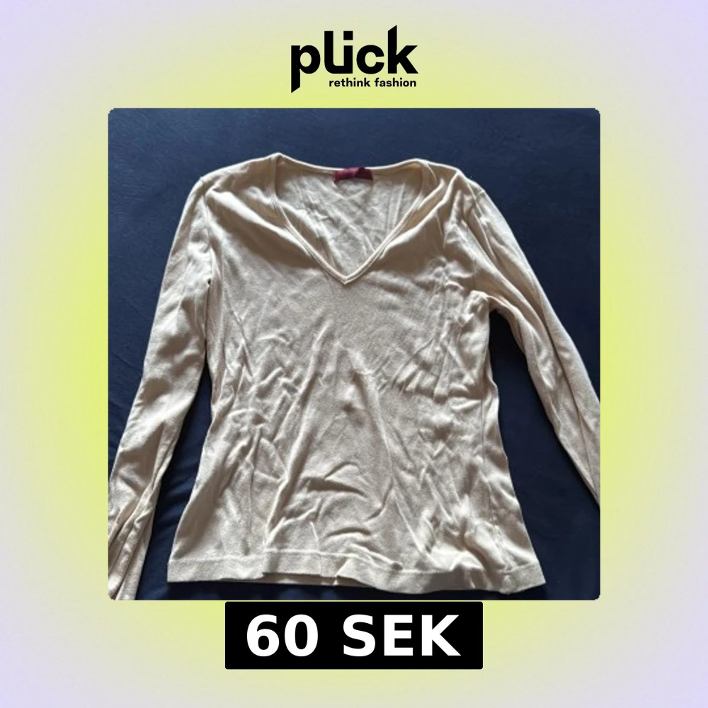 En stilren beige långärmad tröja med v-ringning. Tröjan är ganska tjock och mjuk. Den är storlek Medium.
