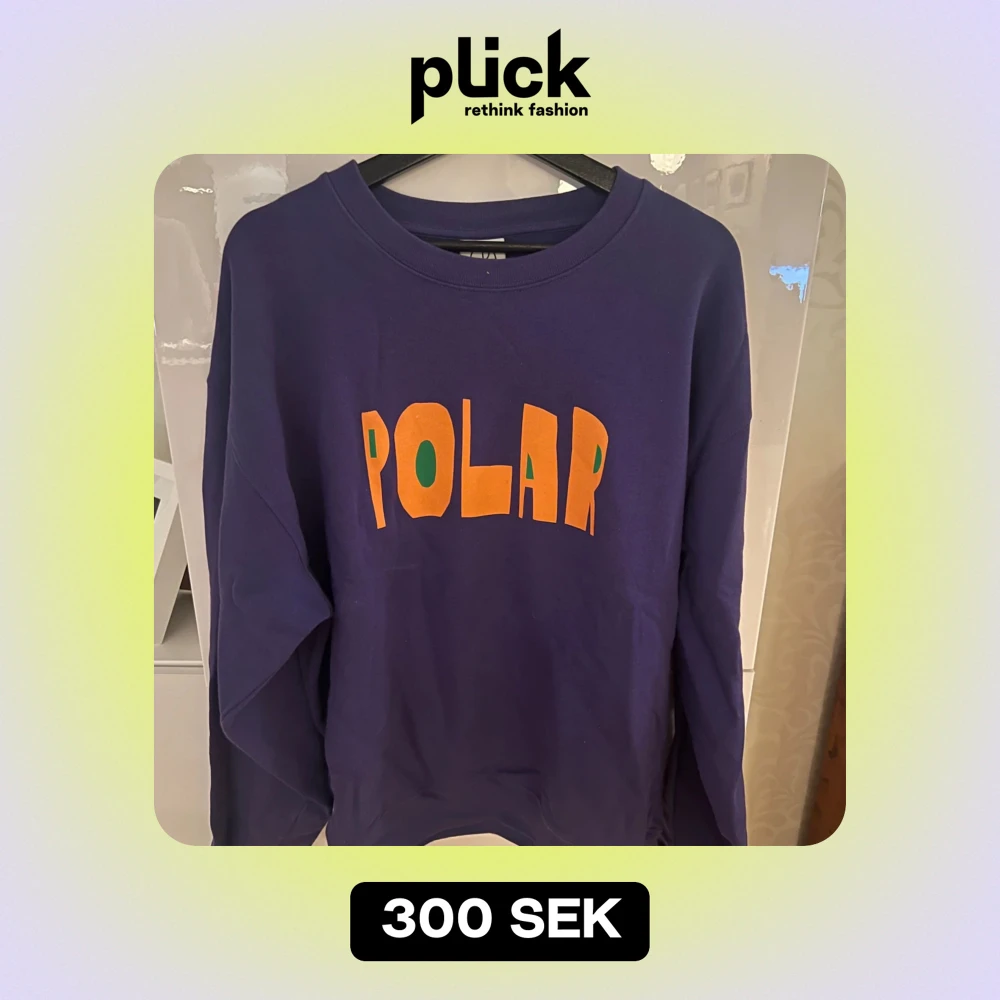 Säljer en snygg mörkblå sweatshirt från Polar med färgglad text på framsidan. Tröjan är i mycket bra skick och perfekt för både vardag och chill. Den har långa ärmar och en bekväm passform. Perfekt för höst och vinter!