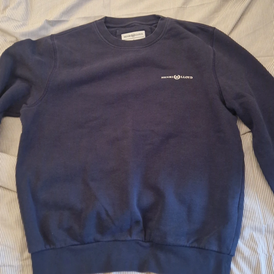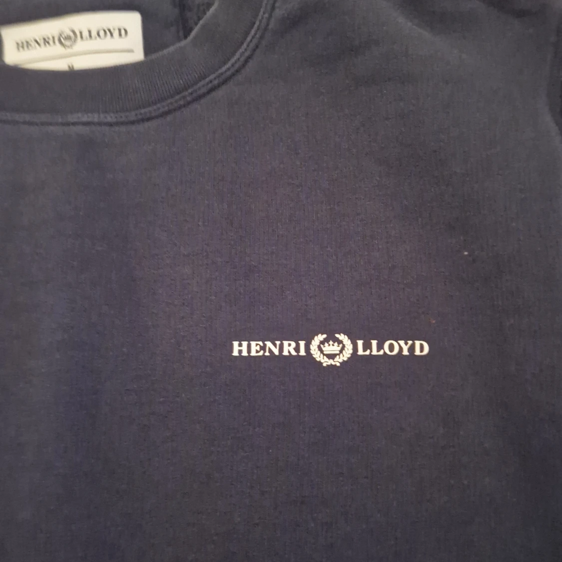 Säljer en mörkblå sweatshirt från Henri Lloyd med rund halsringning och diskret logga tryckt på bröstet. Tröjan har långa ärmar och ribbade muddar vid ärmslut och nederkant. Perfekt för en avslappnad stil.