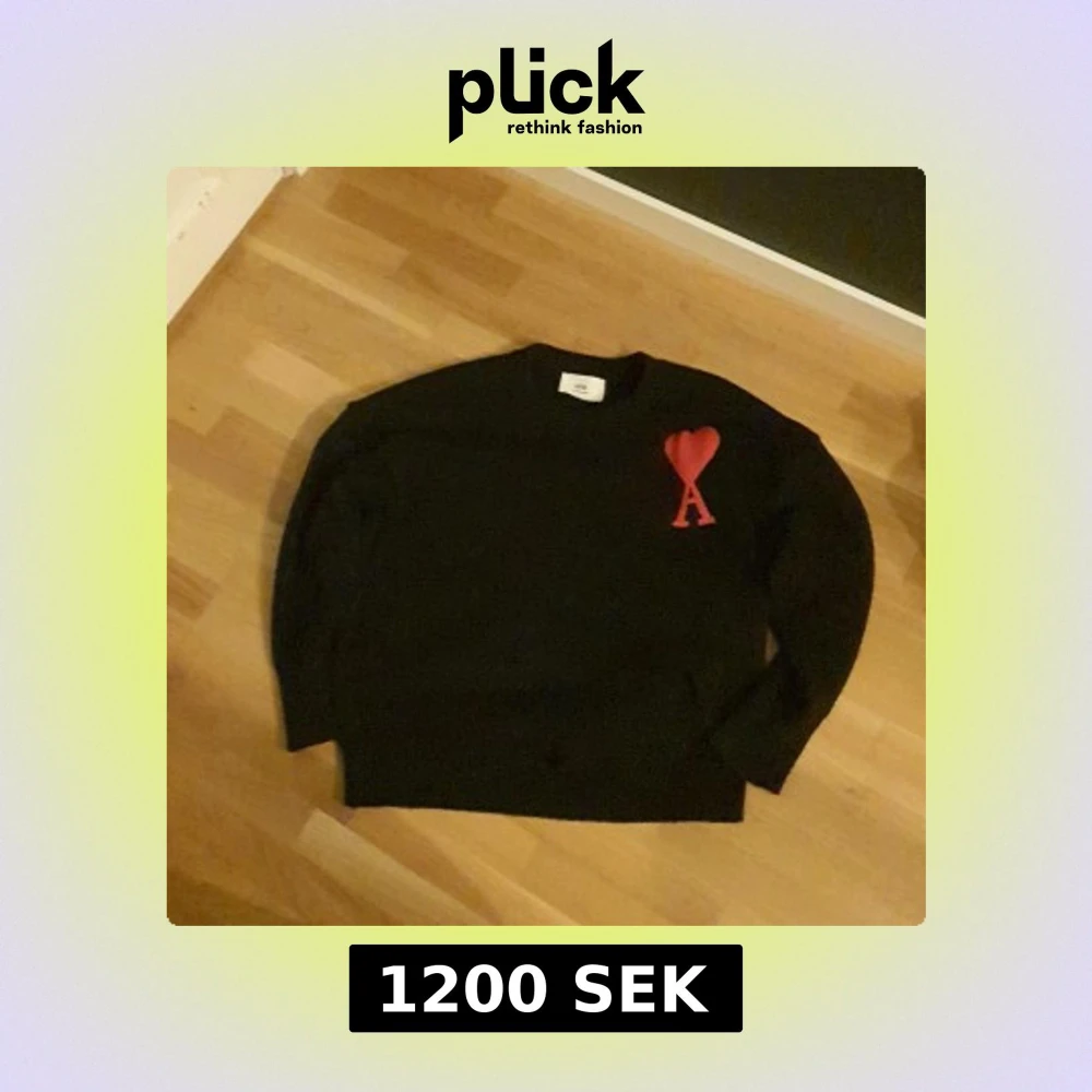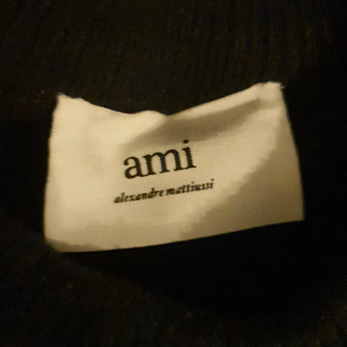Svart stickad tröja från Ami Alexandre Mattiussi med lång ärm och ribbade muddar. På bröstet finns ett rött hjärta med bokstaven A, vilket ger en unik och snygg detalj. Perfekt för dig som gillar stilrena plagg med en twist.