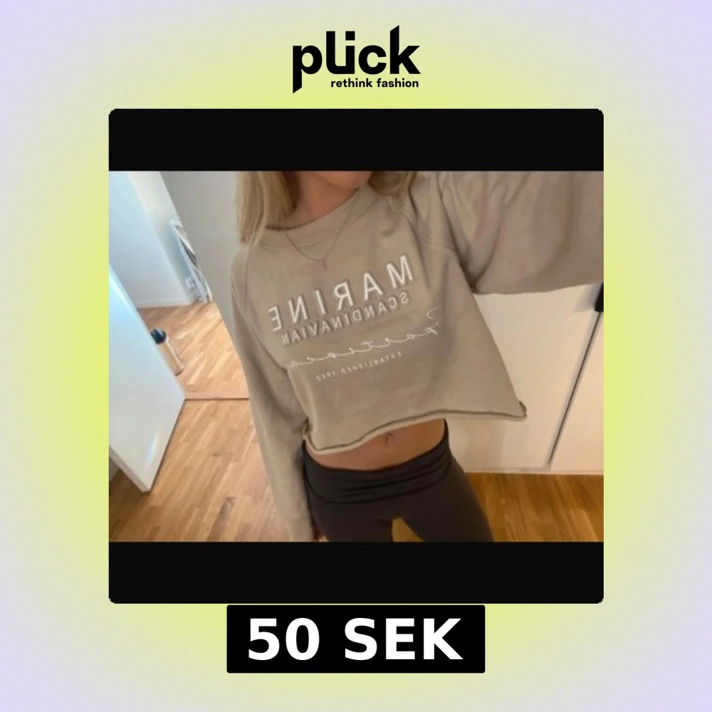 Säljer en beige croppad sweatshirt från Marine Scandinavian. Tröjan har långa ärmar och ett tryck framtill. Perfekt för en avslappnad stil. Jag har klippt av den själv längst ner för en mer croppad look