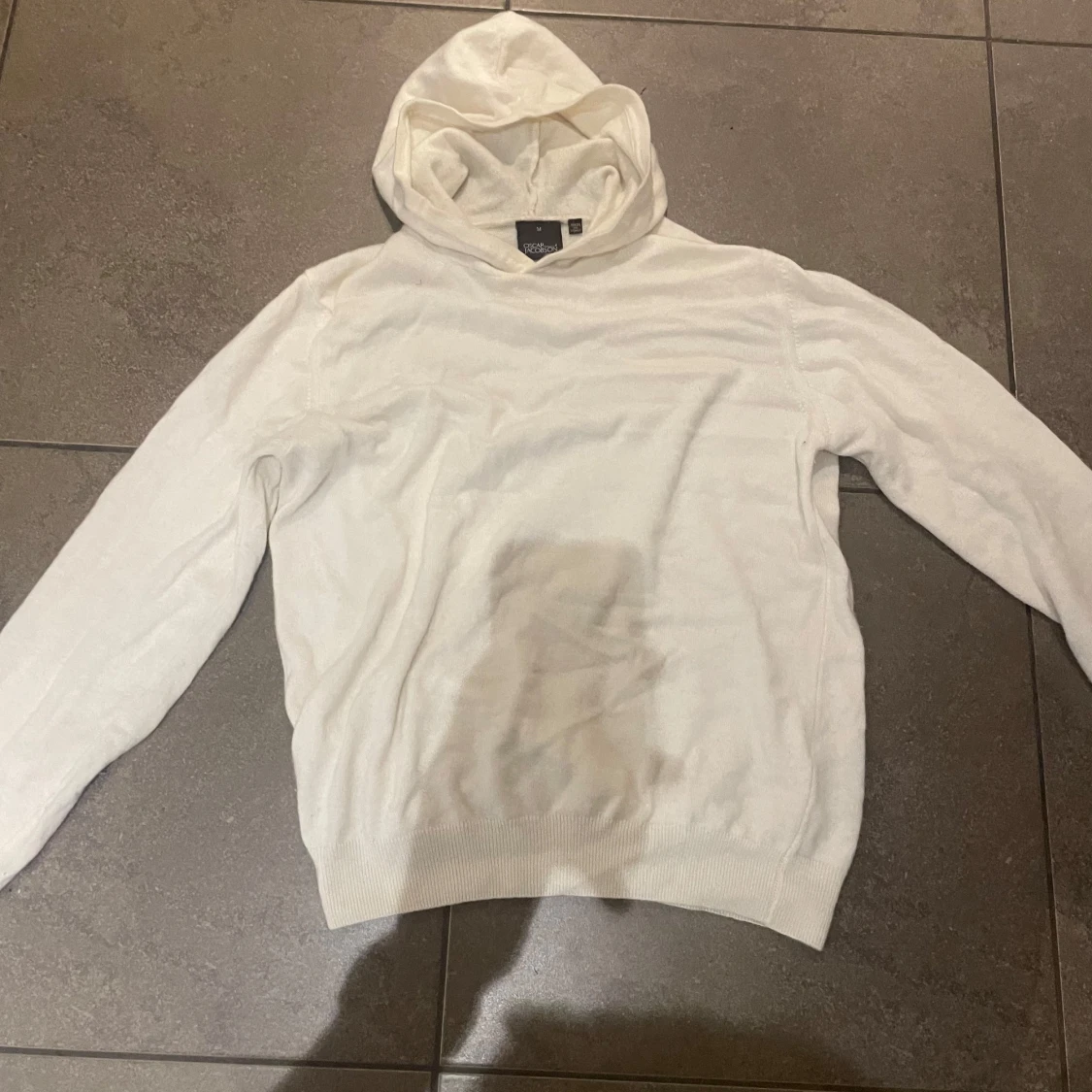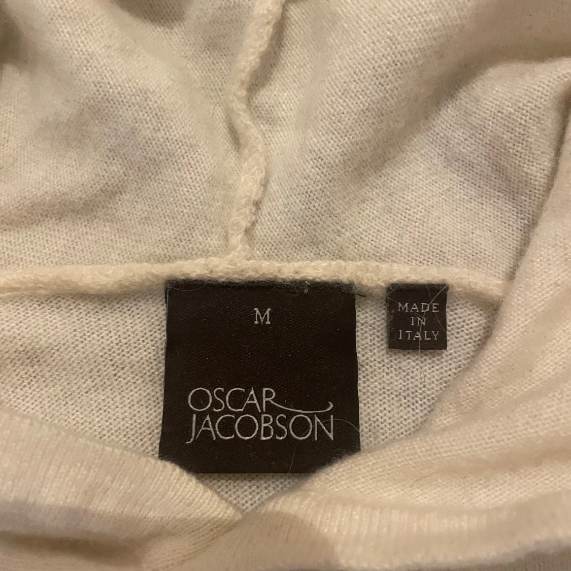 Säljer en stilren vit hoodie från Oscar Jacobson, tillverkad i Italien. Tröjan har en klassisk design med långa ärmar och en bekväm huva. Tröjan är gjord i kashmir och är Perfekt för en avslappnad och trendig look.