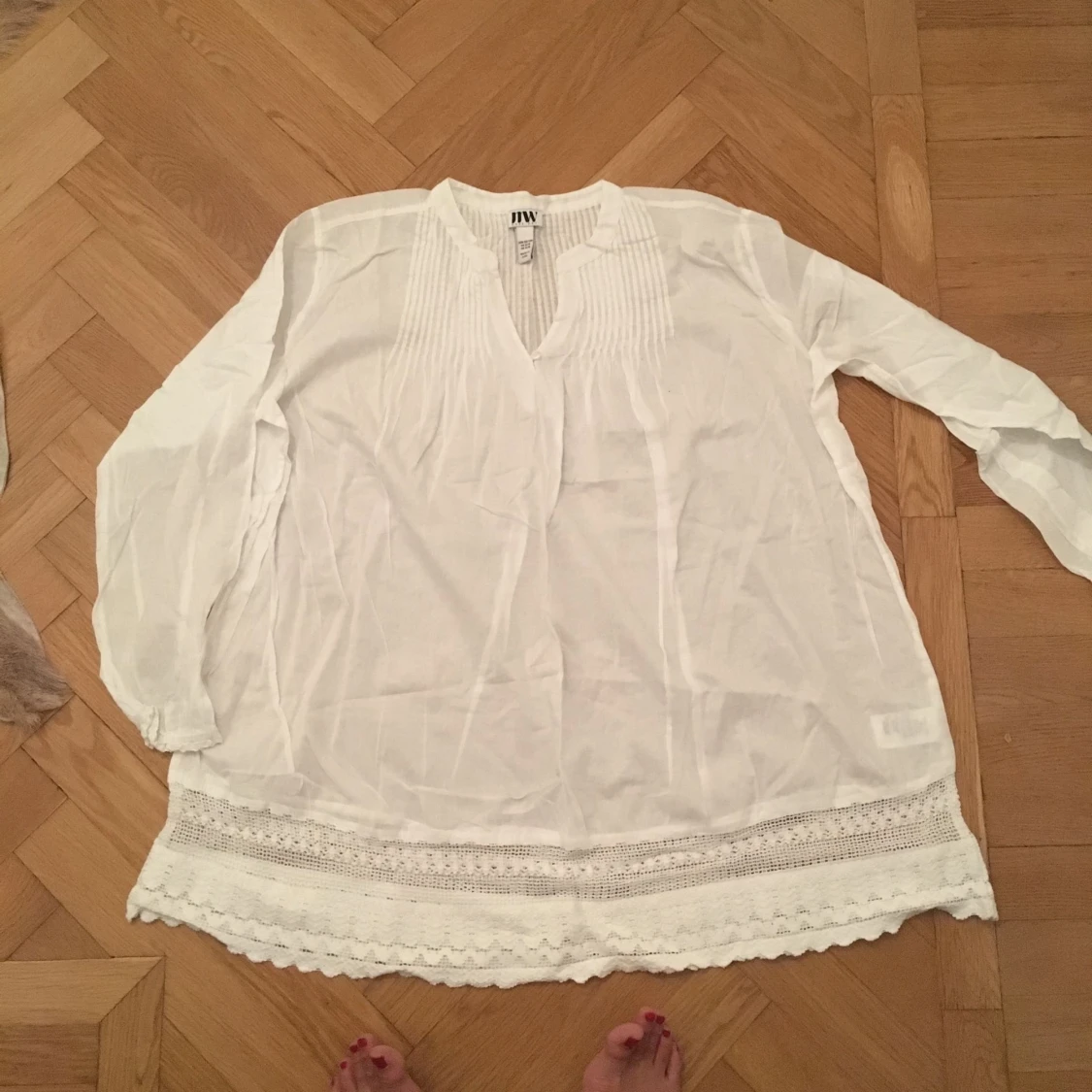 Vid tunika (perfekt med ett skärp runt midjan). Virkad kant. Endast använd 1g.