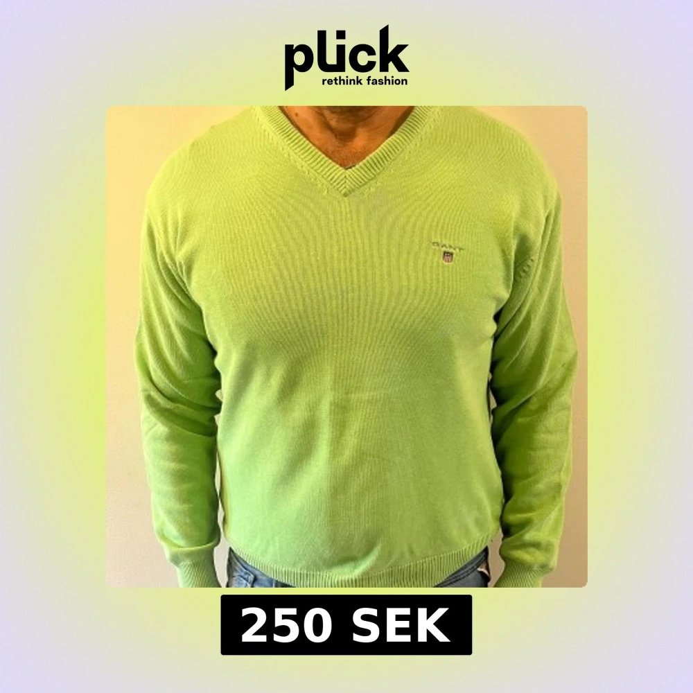Snygg ljusgrön stickad tröja från Gant med v-ringad hals och diskret broderad logga på bröstet. Tröjan har långa ärmar och ribbade muddar för en clean look. Perfekt för dig som gillar stilrena och fräscha färger. Tröjan har några små blekningsfläckar (som syns på bild 4-5) de syns knappt men bara så man är medveten☺️