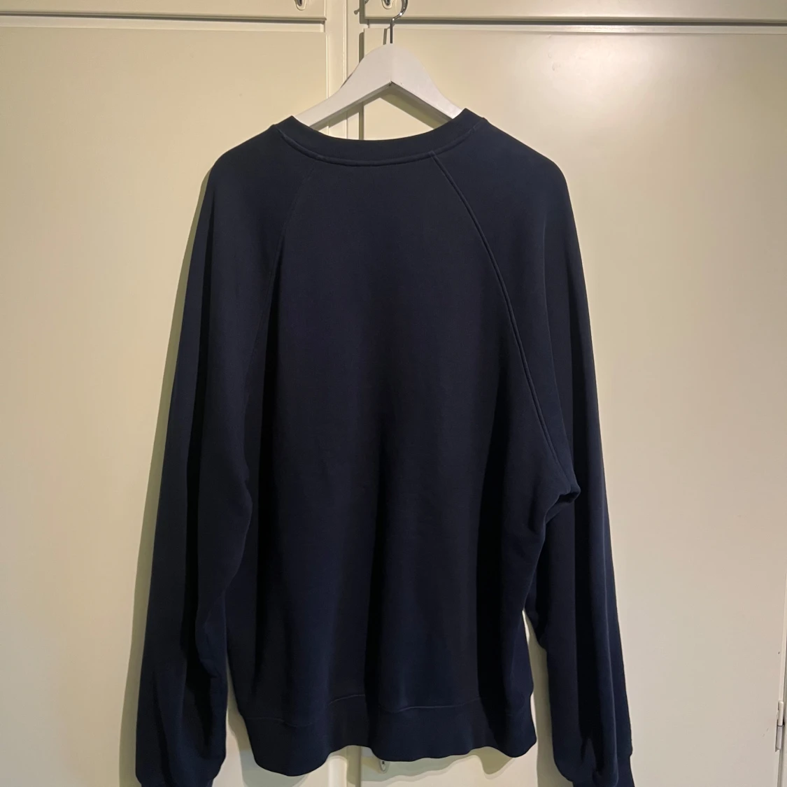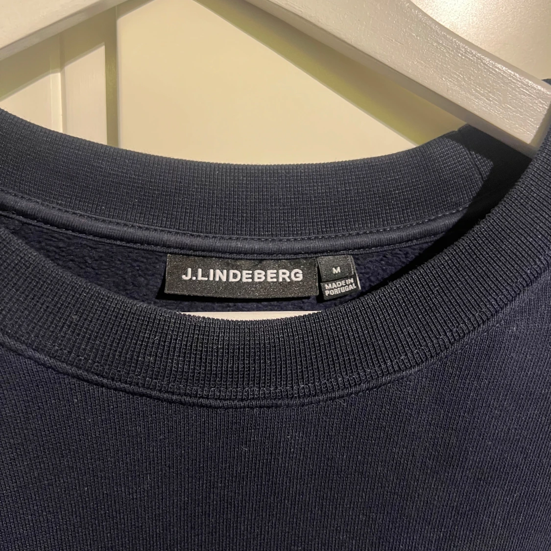 Snygg mörkblå sweatshirt från J.Lindeberg i klassisk modell med rund hals och diskret logga på bröstet. Tröjan är tillverkad i mjuk bomull och har långa ärmar samt ribbade muddar vid ärmslut och nederkant. Perfekt för en clean och stilren look. Storleken är size M men väldigt stor för storlek medium. Nypris 1600kr köpt för ca 4 månader sedan. Mått: Axel-Axel ca 70cm, Mått Axel-midja ca 70cm. Från krage-vrist: ca 90cm. Bredd mage ca 57cm