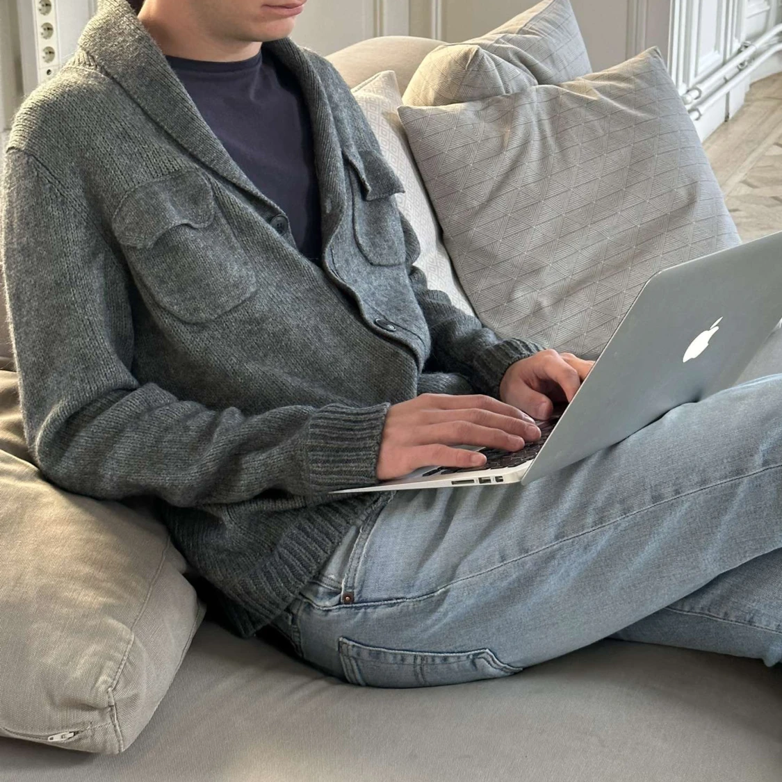 Grå kofta i ull! Knappt använd och bra kvalitet. Storleken är L och modellen är 182cm. Köp på vår instagram adude_uf