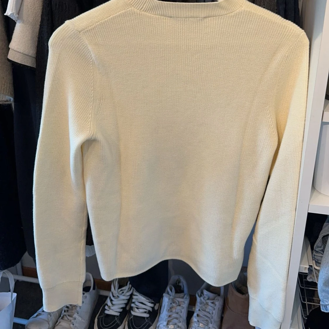Säljer en superfin stickad tröja från Mango. Den är i nyskick och har en normal passform. Perfekt för höst och vår! Tröjan har långa ärmar och en rund halsringning. Den är både mysig och stilren, perfekt för att hålla sig varm och snygg på samma gång. 🌼