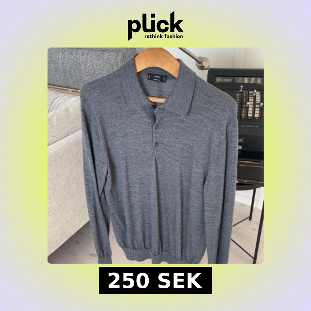 Säljer en stilren grå pikétröja från Mango. Tröjan har långa ärmar och en klassisk krage med knappar framtill. Perfekt för en avslappnad men ändå uppklädd look.