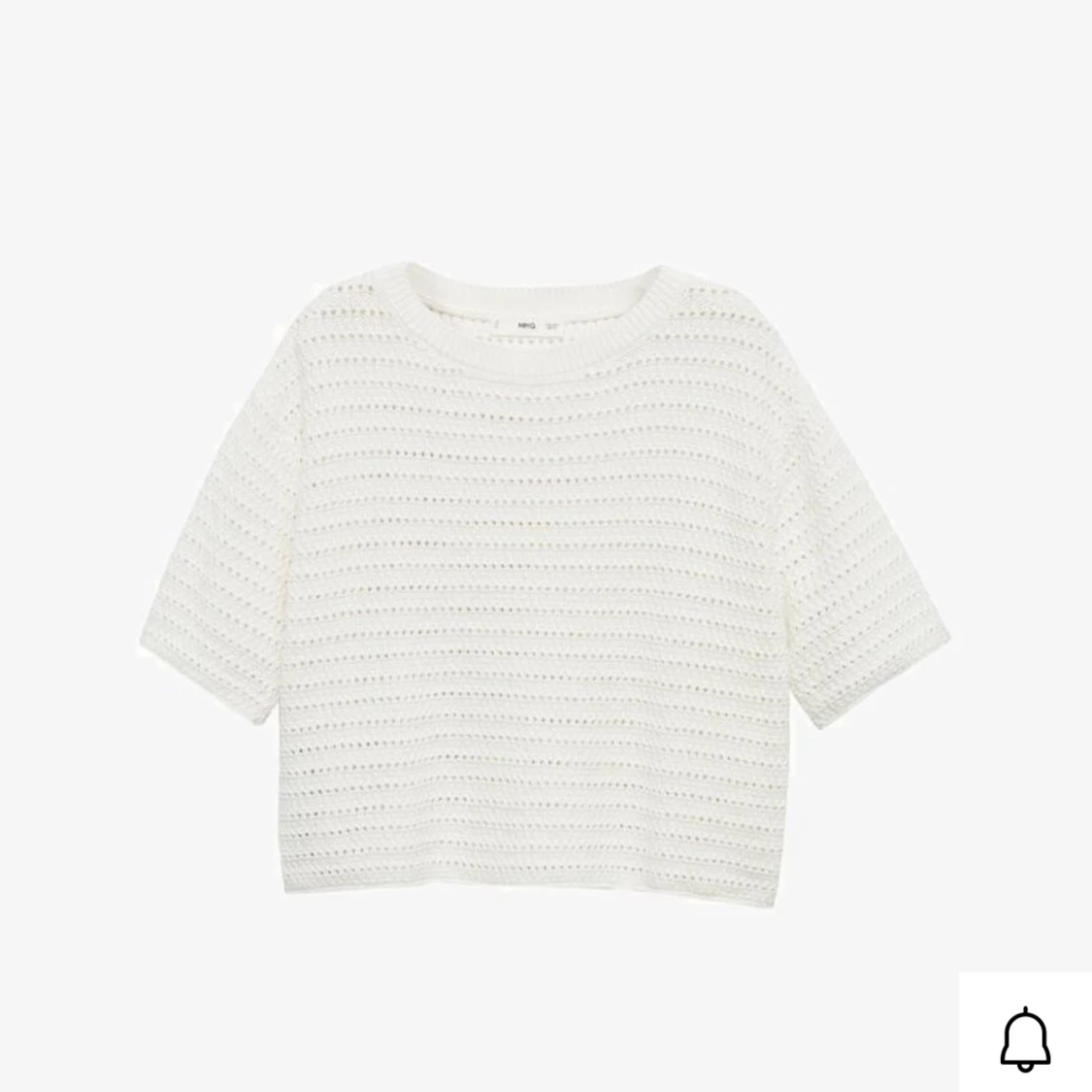 Säljer en vit stickad croppad tröja med korta ärmar. Tröjan har ett luftigt och lätt hålmönster, perfekt för varmare dagar. Enkel och stilren design som passar till mycket.