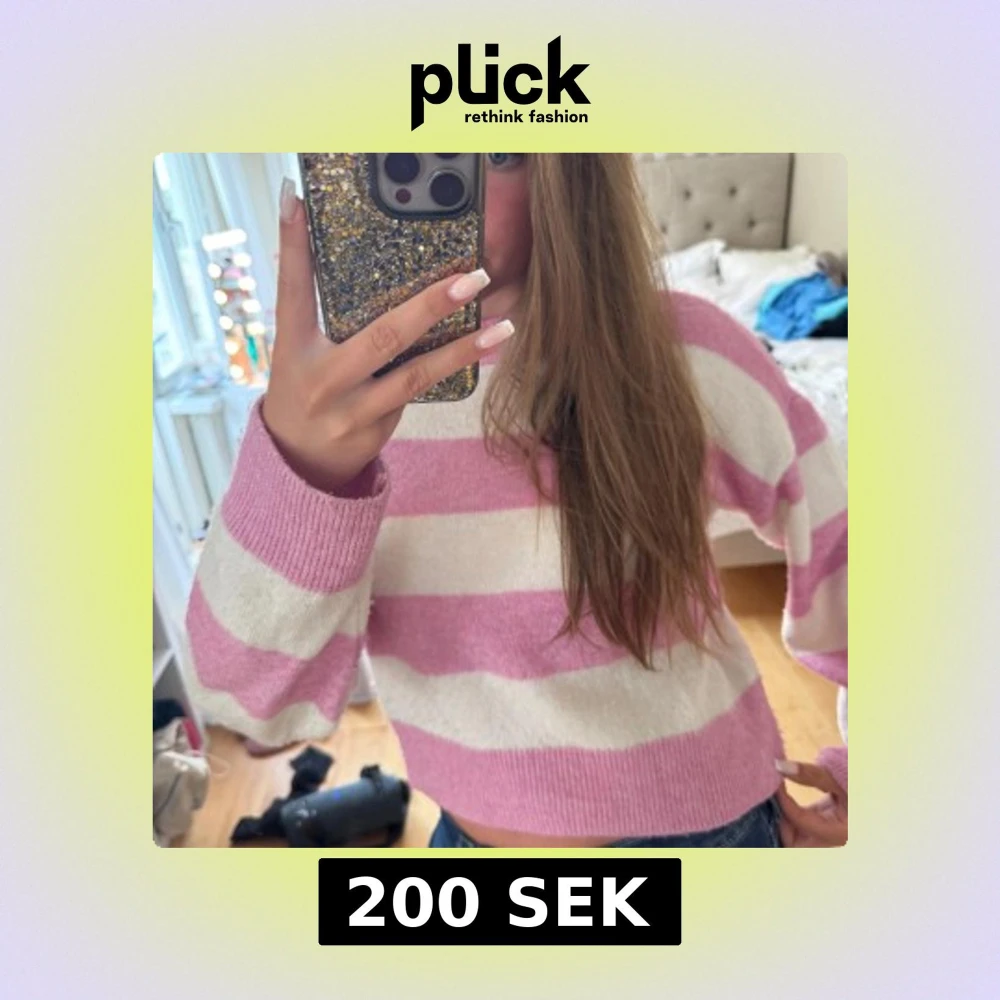 Supermysig stickad tröja med breda rosa och vita ränder. Modellen är croppad med ribbade muddar och rund hals. Perfekt för dig som gillar en chill och söt stil. Passar till jeans eller kjol för en avslappnad vibe.