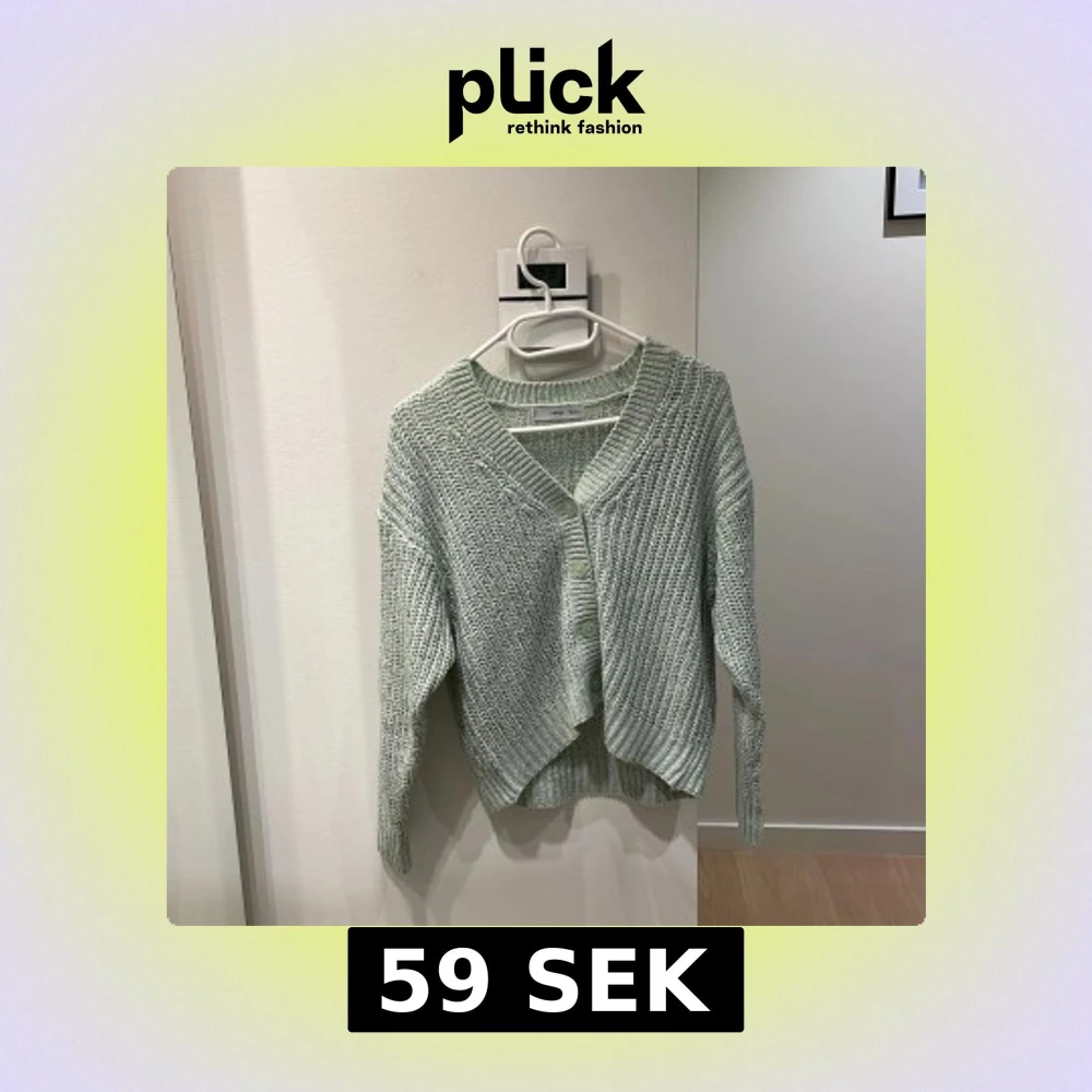 Superfin ljusgrön stickad kofta från Mango med v-ringning och stora knappar framtill. Koftan har lång ärm, ribbade muddar och en loose fit. 💚