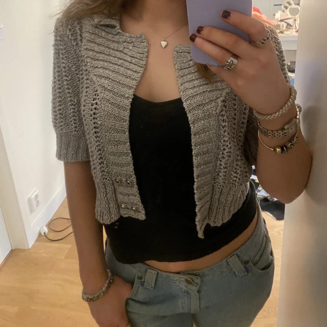 supersnygg kofta från bruuns bazaar copenhagen! knappar nedtill och lite skimmer i trådarna🙌🏼🙌🏼 koftan finns kvar!!!!