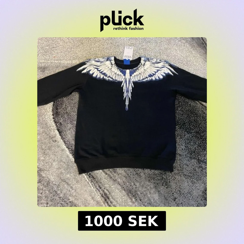 Snygg svart tröja från Marcelo Burlon med ett iögonfallande vitt och blått vingmönster över axlarna. Perfekt för dig som vill sticka ut med en unik design. Tröjan har långa ärmar och en bekväm passform.