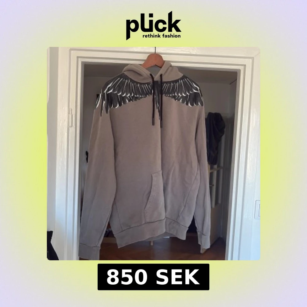 Säljer en mörk grön hoodie från Marcelo Burlon County of Milan med svartvitt vingmönster över axlar och bröst. Tröjan har huv ochen magficka. Nypris:5000kr