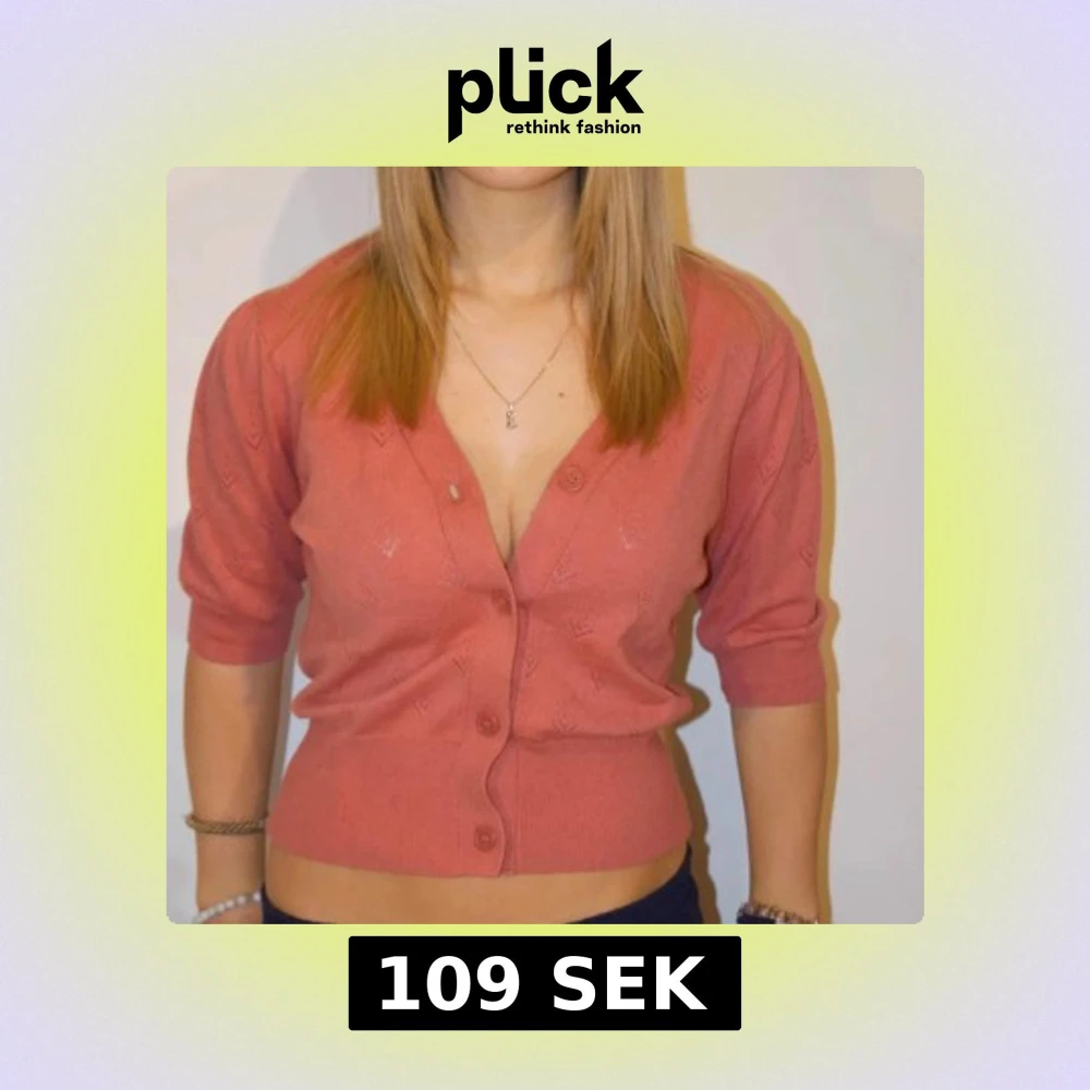 Säljer en söt rosa croppad kofta med knappar framtill och trekvartsärm. Tröjan har ett diskret mönster i tyget och är i mjukt, stretchigt material. Perfekt att styla till jeans eller kjol.