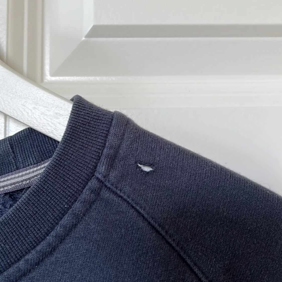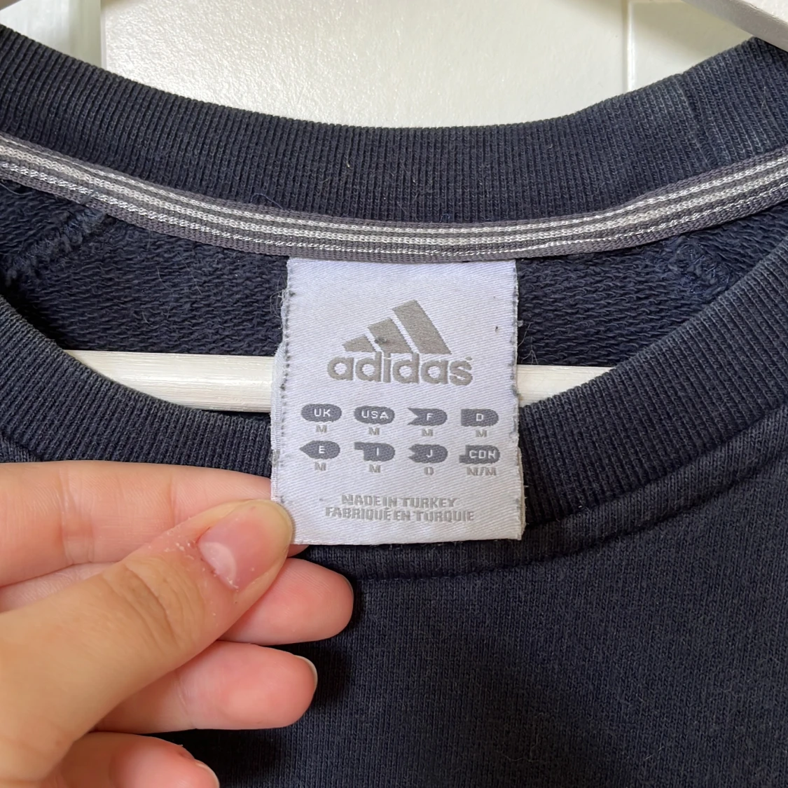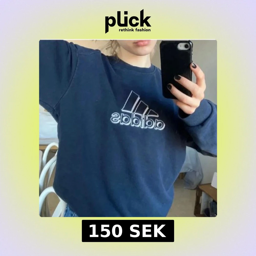 Mörkblå vintage sweatshirt från Adidas med broderad logga framtill. Rund halsringning och långa ärmar. Köpt på plick för längesen. Ett litet hål på ena axeln, men inget som syns på.