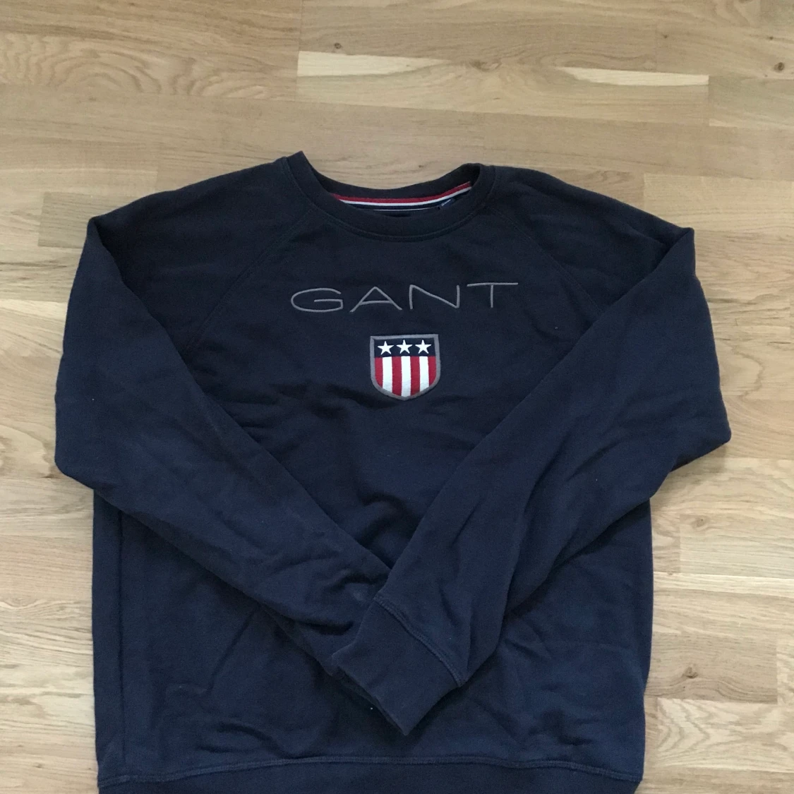 Knappt använd Gant sweatshirt i storlek 170cm(15 år) jag skulle säga att den är en S i vuxen storlek, fint skick inga synliga fläckar men ett litet hål på baksidan som knappt syns,