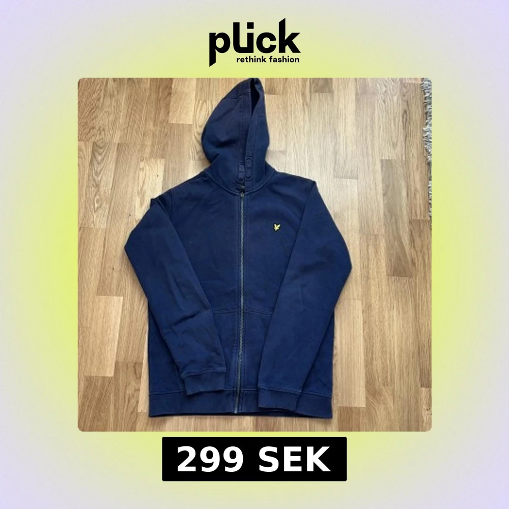 Marinblå hoodie från Lyle & Scott med dragkedja och klassisk gul logga på bröstet. Tröjan har huva, långa ärmar och är gjord i mjuk bomull. Perfekt för chill dagar eller när du vill ha en enkel och stilren look.