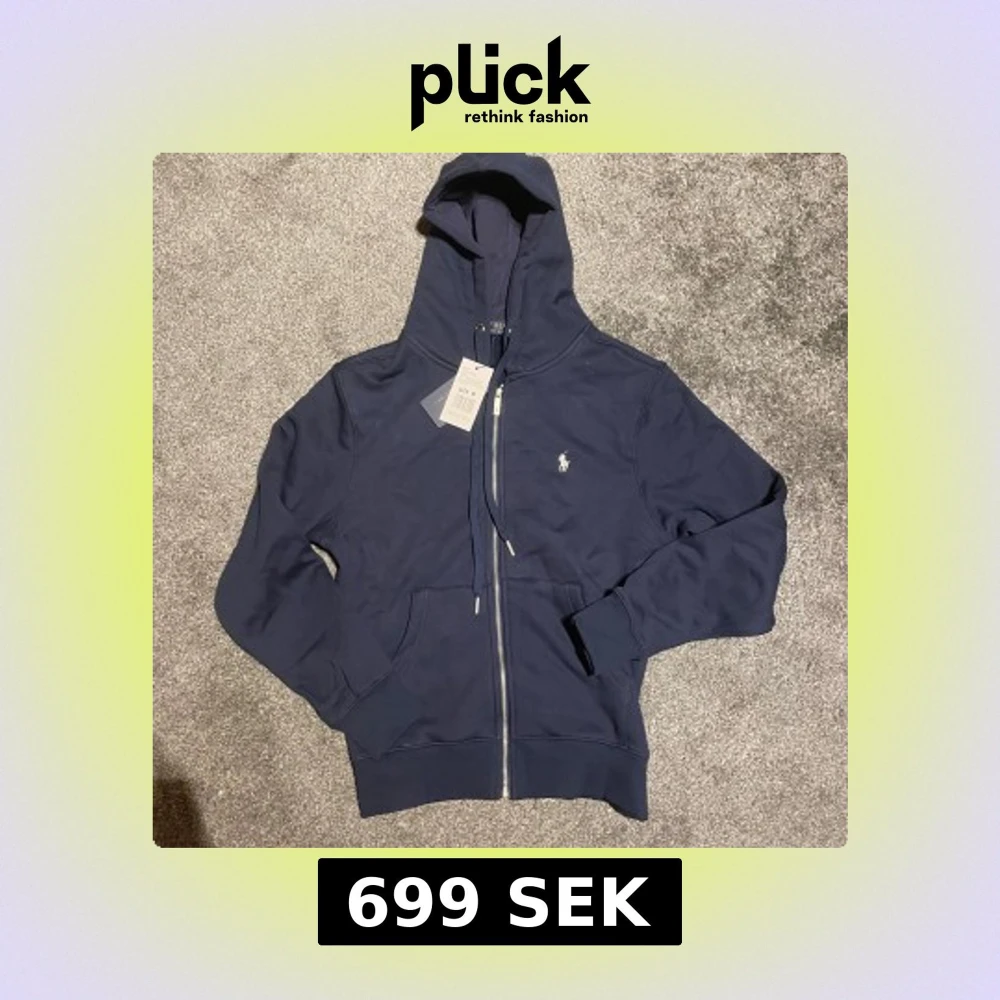 Snygg marinblå hoodie från Polo Ralph Lauren med dragkedja framtill, huva med snörning och klassisk logga broderad på bröstet. Tröjan har kängurufickor och ribbade muddar. Perfekt för en chill och stilren look.