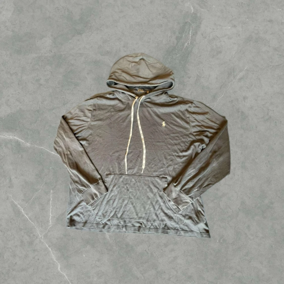 Säljer en stilren marinblå hoodie från Polo Ralph Lauren med det klassiska broderade logotypen på bröstet. Det är storlek L men kan också passa en större M. Snörena är inte orginal. Vid några frågor eller fler bilder är det bara att höra av sig.