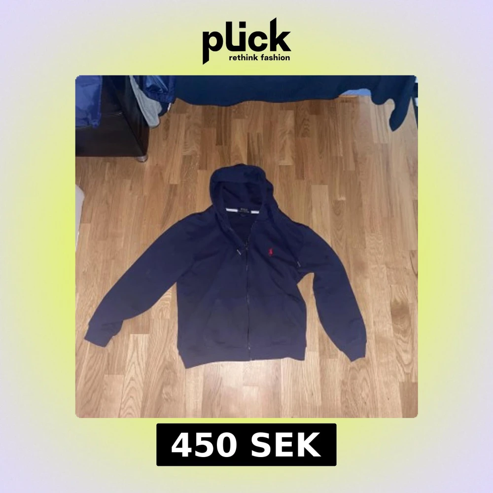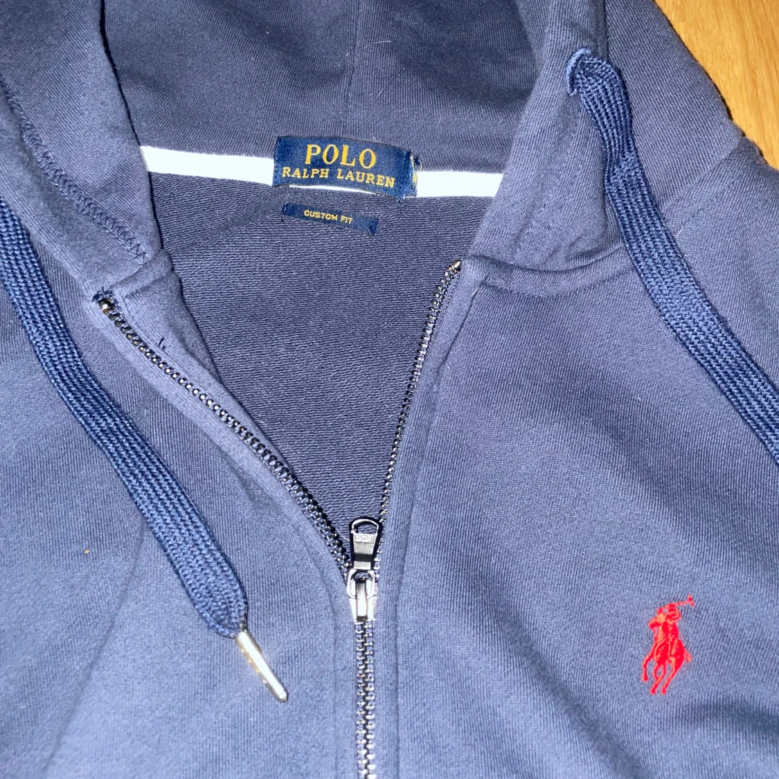 Passar XS/S Marinblå hoodie från Polo Ralph Lauren med dragkedja, huva och snörning. Klassisk röd logga broderad på bröstet och känguruficka framtill. Tillverkad i mjuk bomull, perfekt för chill dagar eller när du vill ha en clean streetstyle.